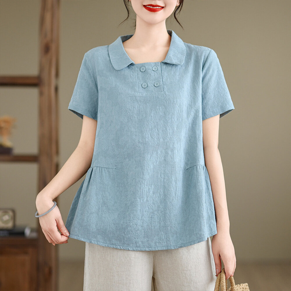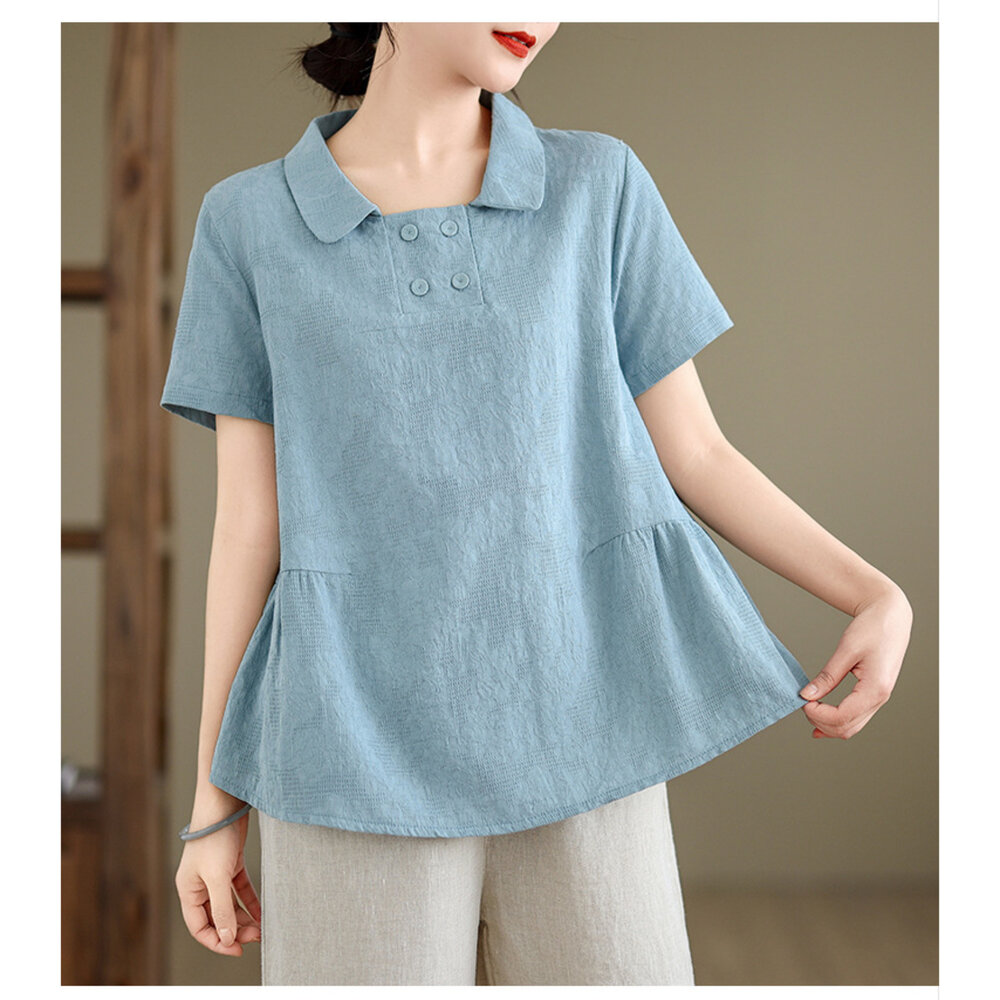 商品資訊/尺寸.F/顏色.照片色/材質/成分:棉麻 規格/尺寸: F./衣長.65公分/胸圍.108公分/肩寬.41公分/袖口.36公分/袖長.19.5公分 商品會因不同批製作的因素,而有尺寸及顏色上些許落差,尺寸測量正負2公分為正常範圍內喔! 其他資料平放測量平面尺寸