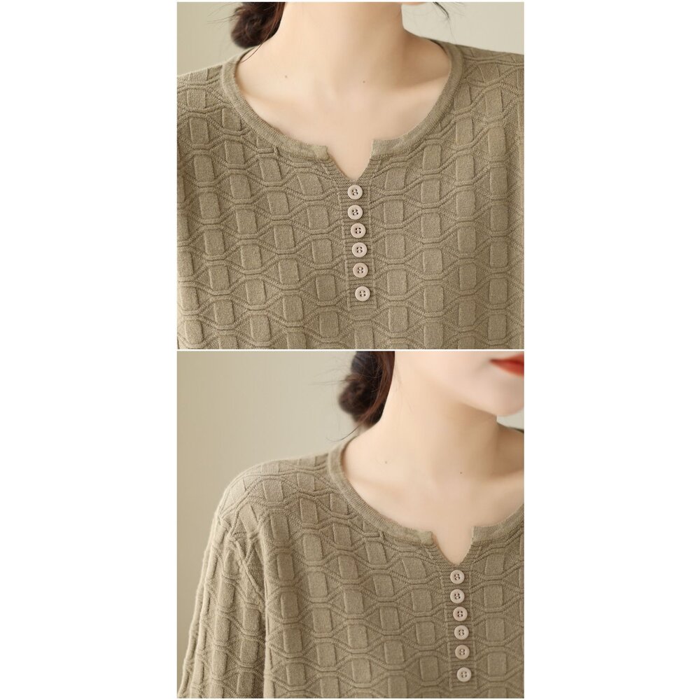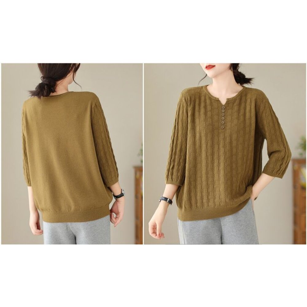 商品資訊/尺寸F/顏色.照片色/材質/成分.針織 尺寸/規格.F./ 衣長.60公分/胸圍.108公分/袖長.40公分/肩寬.40公分 商品會因不同批製作的因素,而有尺寸及顏色上些許落差,尺寸測量正負2公分為正常範圍內喔! 其他資料平放測量平面尺寸