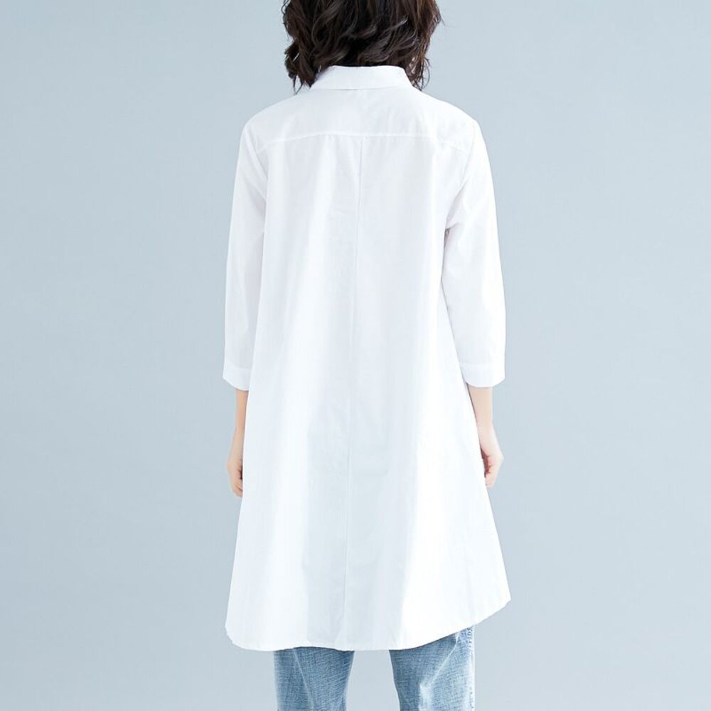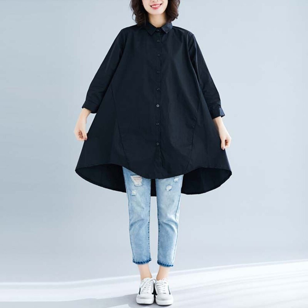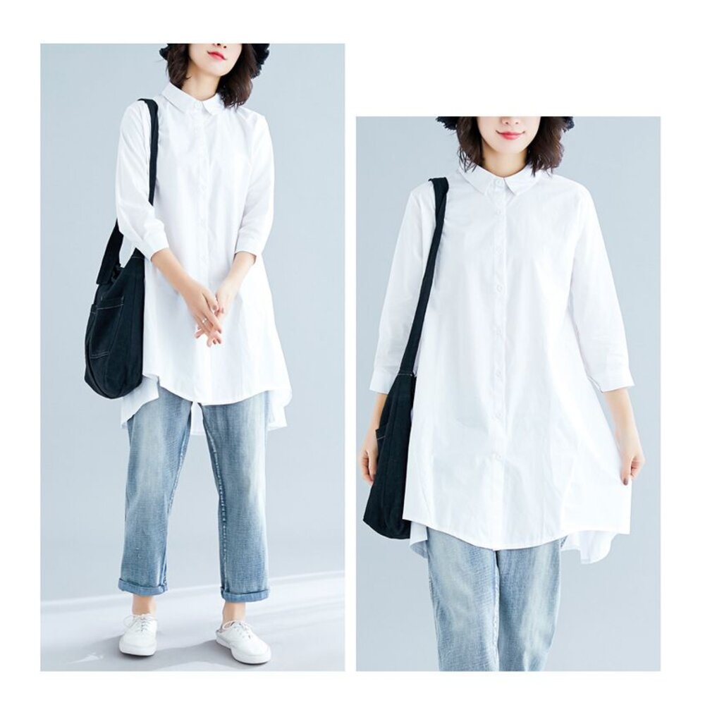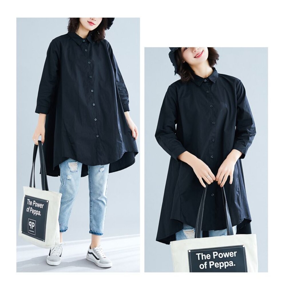 商品資訊/尺寸.F/顏色.黑.白/材質/成分.棉麻 尺寸/規格.F./衣長.96.5公分/胸圍.110公分/肩寬.41公分/袖長.46.5公分 (本商品無口袋設計) 商品會因不同批製作的因素,而有尺寸及顏色上些許落差,尺寸測量正負2公分為正常範圍內喔! 其他資料平放測量平面尺寸