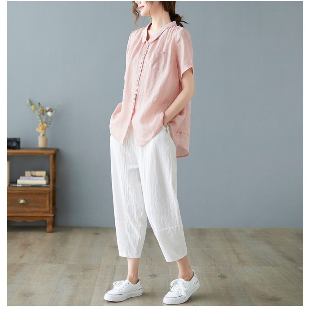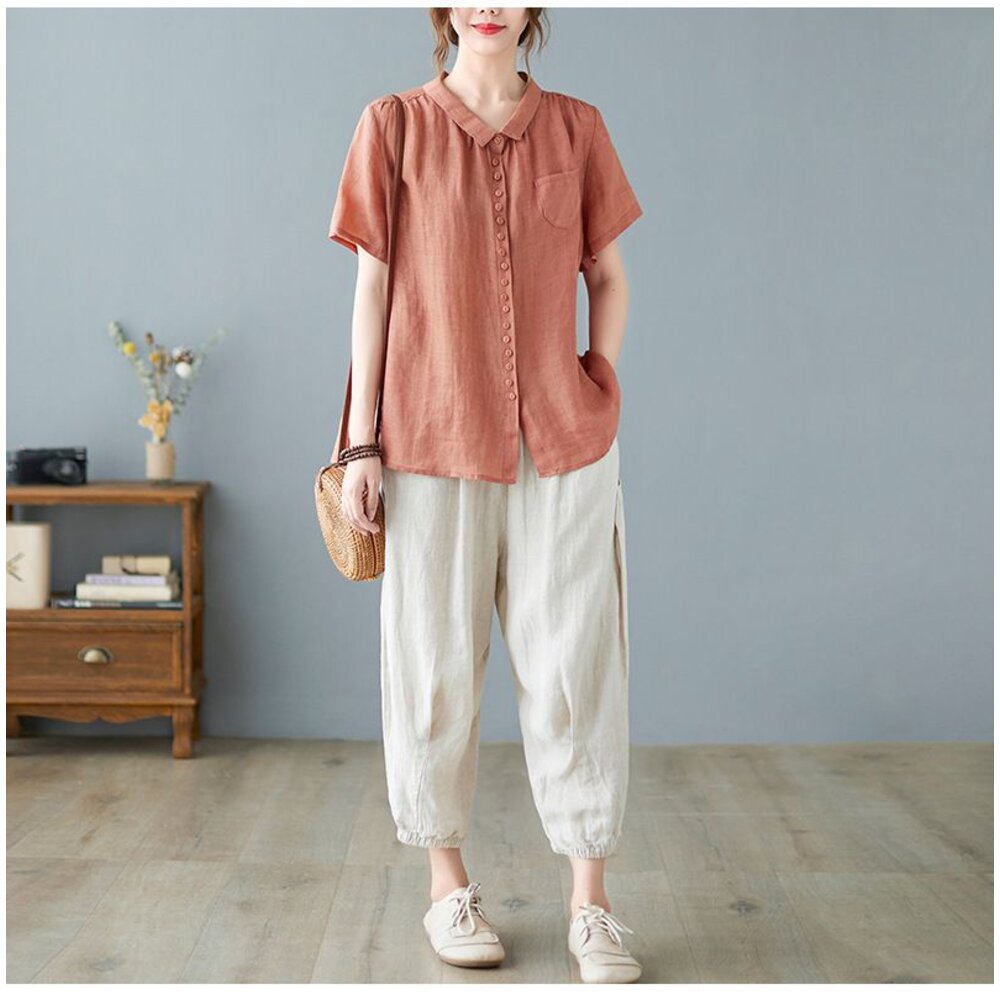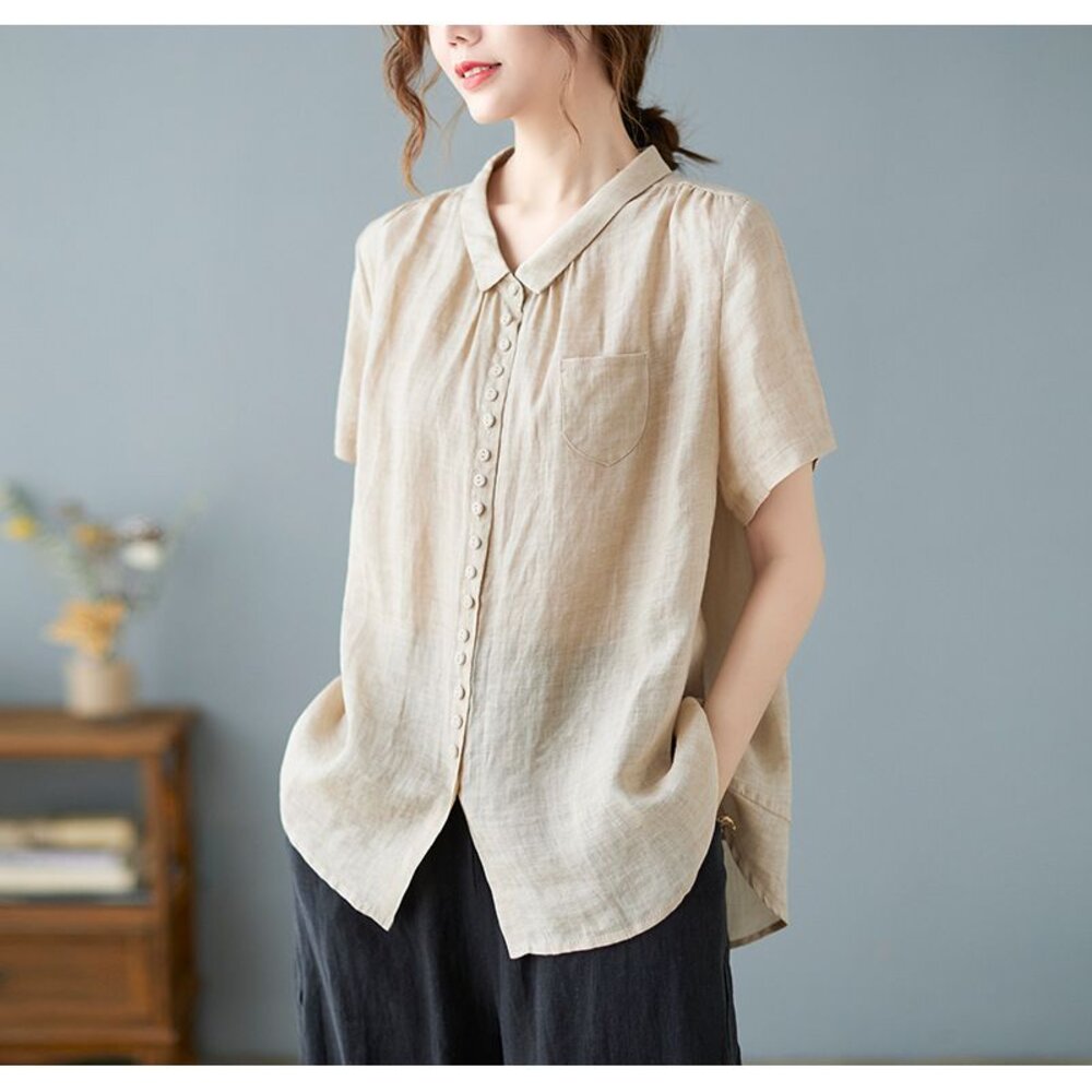 商品資訊/尺寸.F/顏色.照片色/材質/成分.棉麻 尺寸/規格. F./衣長.63-69公分/胸圍.118公分/肩寬.41公分/袖長.23公分 商品會因不同批製作的因素,而有尺寸及顏色上些許落差,尺寸測量正負2公分為正常範圍內喔! 其他資料平放測量平面尺寸