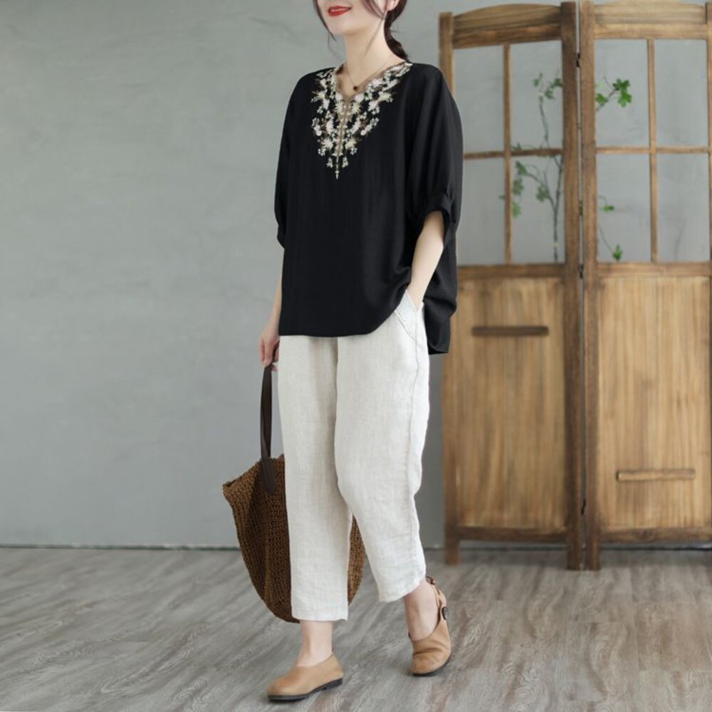 商品資訊/尺寸.F/顏色.照片色/材質/成分.棉麻 尺寸/規格. F./衣長.63公分/胸圍.122公分/肩寬.43公分/袖長.28公分 商品會因不同批製作的因素,而有尺寸及顏色上些許落差,尺寸測量正負2公分為正常範圍內喔! 其他資料平放測量平面尺寸