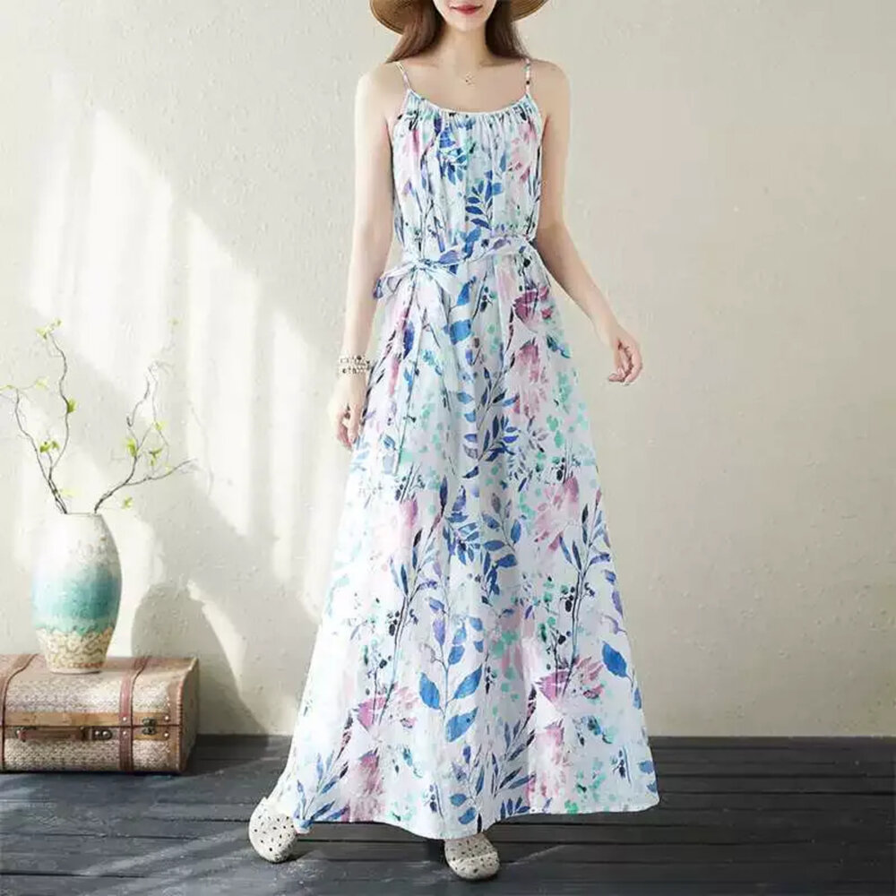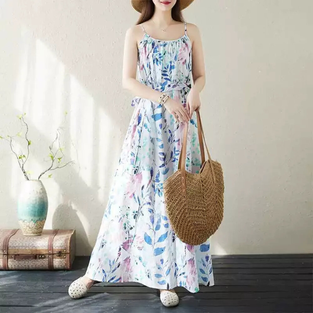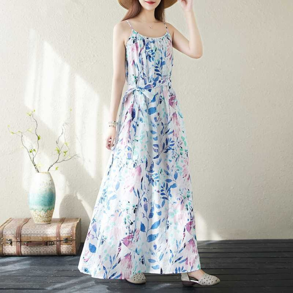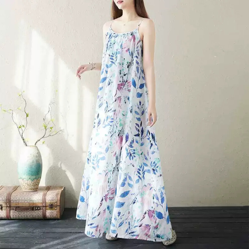 商品資訊/尺寸.F/顏色.照片色/材質.棉麻 尺寸. F./裙長.120公分(不含肩帶)130公分(含肩帶)/胸圍.120公分/下擺.242公分 商品會因不同批製作的因素,而有尺寸及顏色上些許落差,尺寸測量正負2公分為正常範圍內喔! 其他資料平放測量平面尺寸