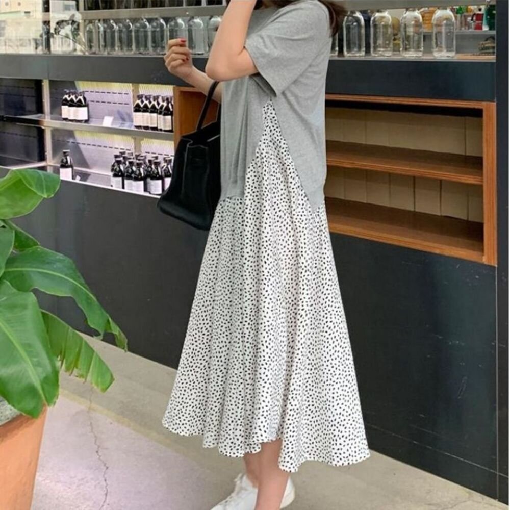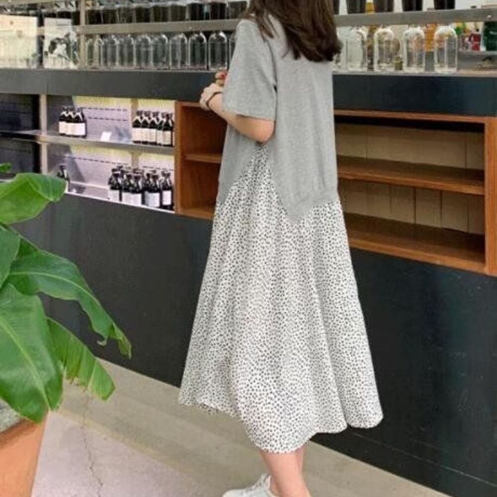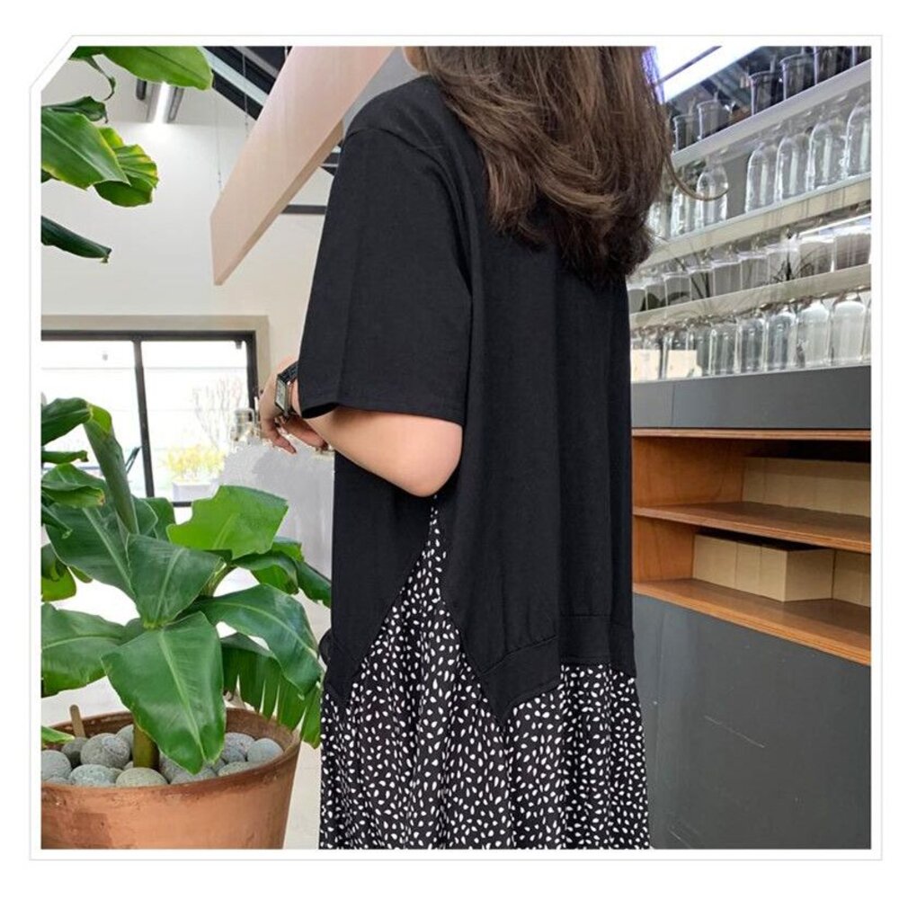 商品資訊/尺寸F/顏色.黑.淺灰/材質/成分.棉+雪紡 尺寸/規格.F./ 裙長.115公分/胸圍.106公分/肩寬.41公分/袖長.22公分/ 商品會因不同批製作的因素,而有尺寸及顏色上些許落差,尺寸測量正負2公分為正常範圍內喔! 其他資料平放測量平面尺寸