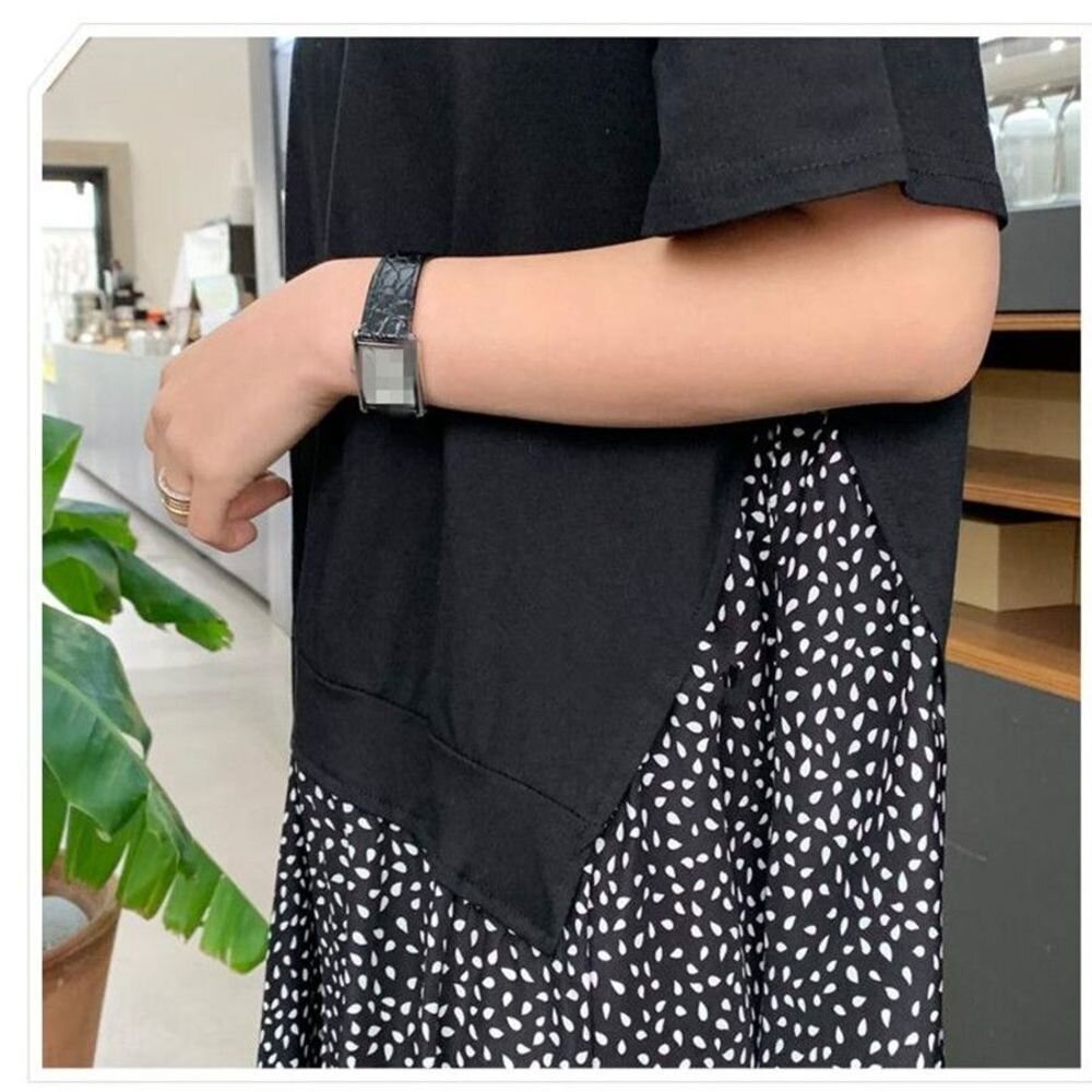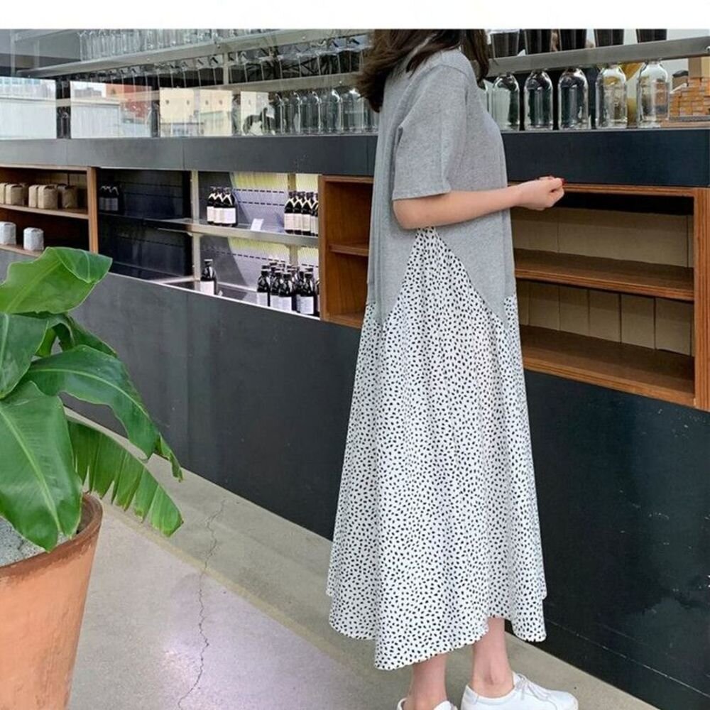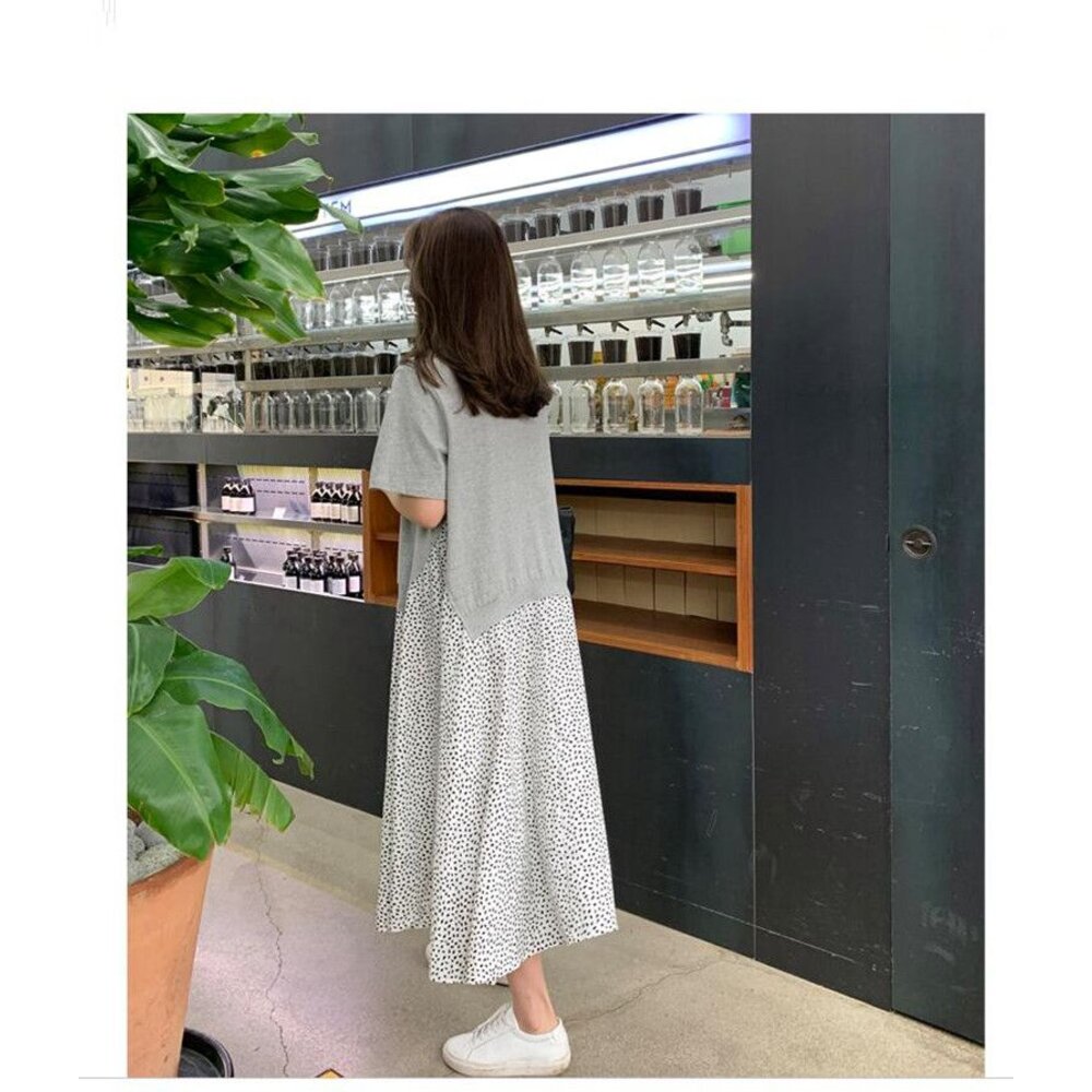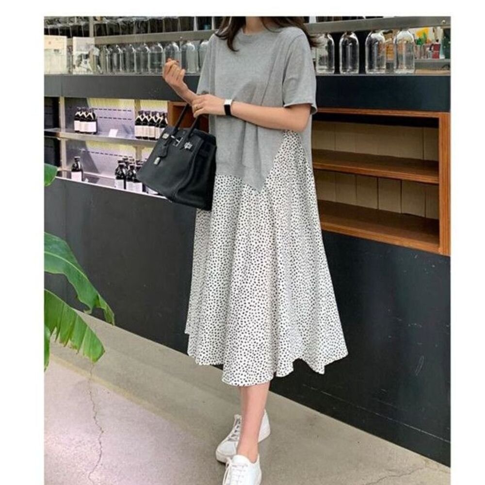 商品資訊/尺寸F/顏色.黑.淺灰/材質/成分.棉+雪紡 尺寸/規格.F./ 裙長.115公分/胸圍.106公分/肩寬.41公分/袖長.22公分/ 商品會因不同批製作的因素,而有尺寸及顏色上些許落差,尺寸測量正負2公分為正常範圍內喔! 其他資料平放測量平面尺寸