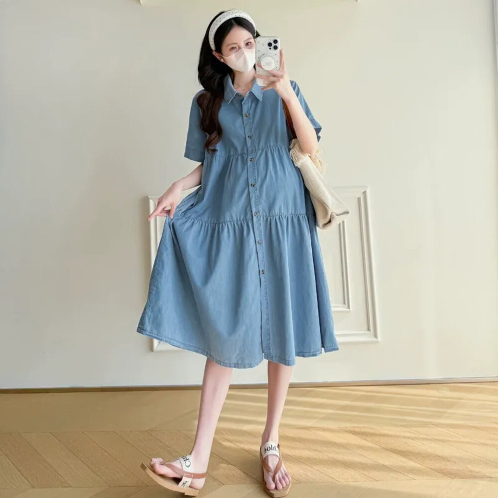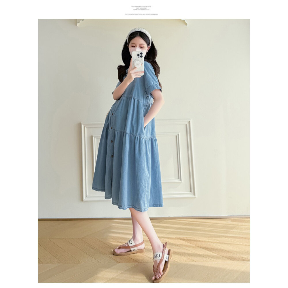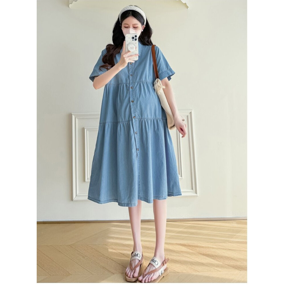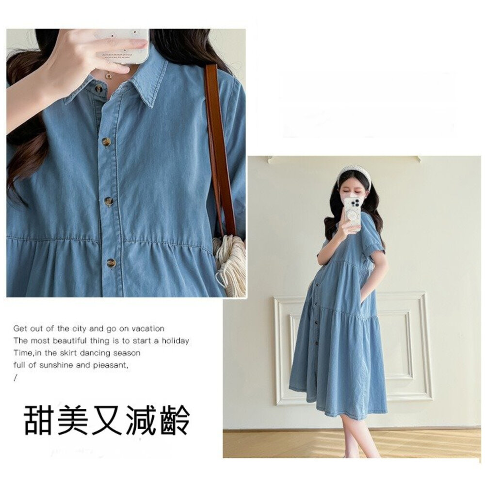 商品資訊/尺寸F/顏色.照片色/材質.棉+聚酯纖維/ 尺寸.F. 裙長.105公分/胸圍.108公分/袖長.23公分 商品會因不同批製作的因素,而有尺寸及顏色上些許落差,尺寸測量正負2公分為正常範圍內喔! 其他資料平放測量平面尺寸