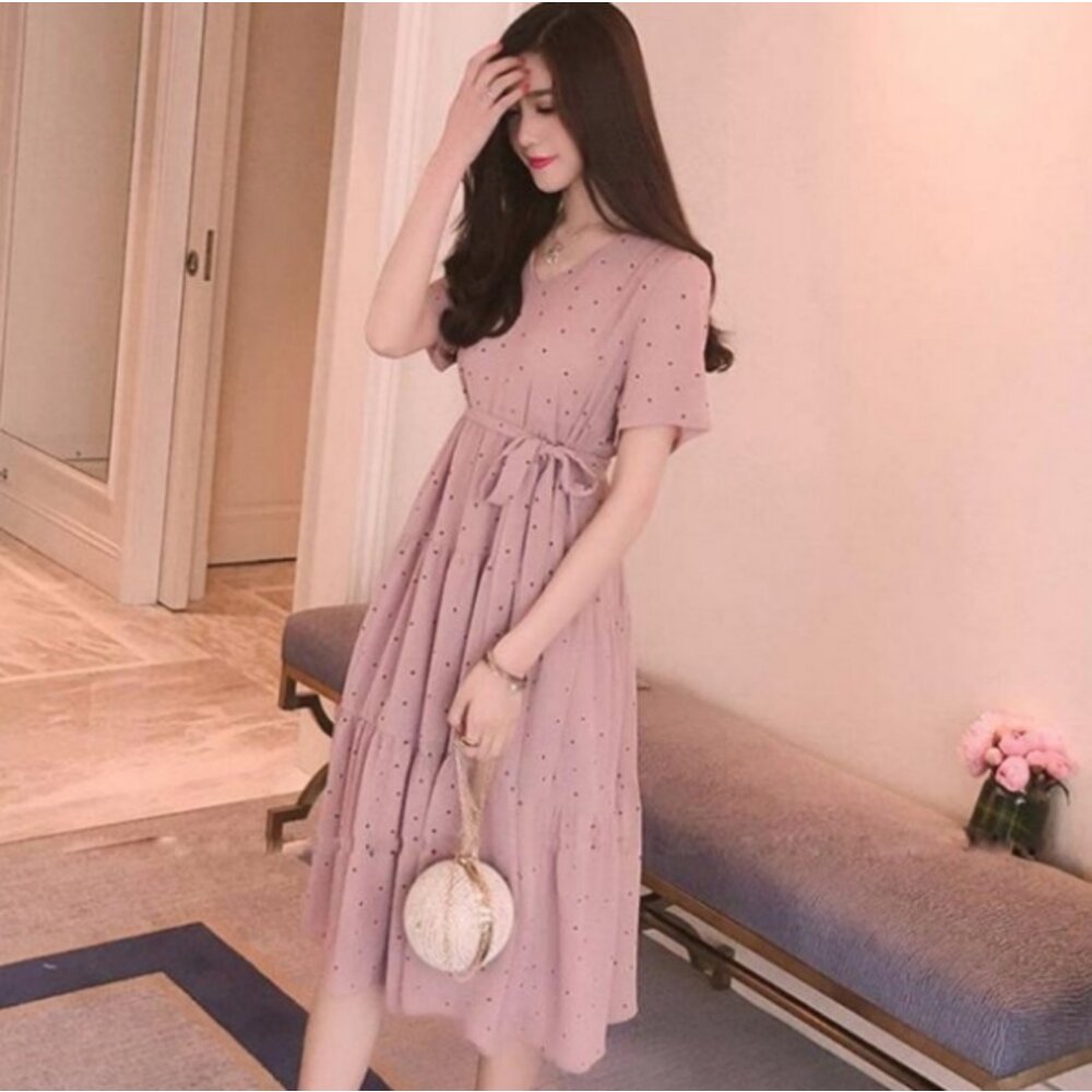 商品資訊/尺寸F/顏色.藍色.粉色(粉色本批到貨實品顏色較亮)/材質成分.雪紡 尺寸規格/裙長.97公分/胸圍104公分/ 商品會因不同批製作的因素,而有尺寸及顏色上些許落差,尺寸測量正負2公分為正常範圍內喔! 其他資料平放測量-單面尺寸