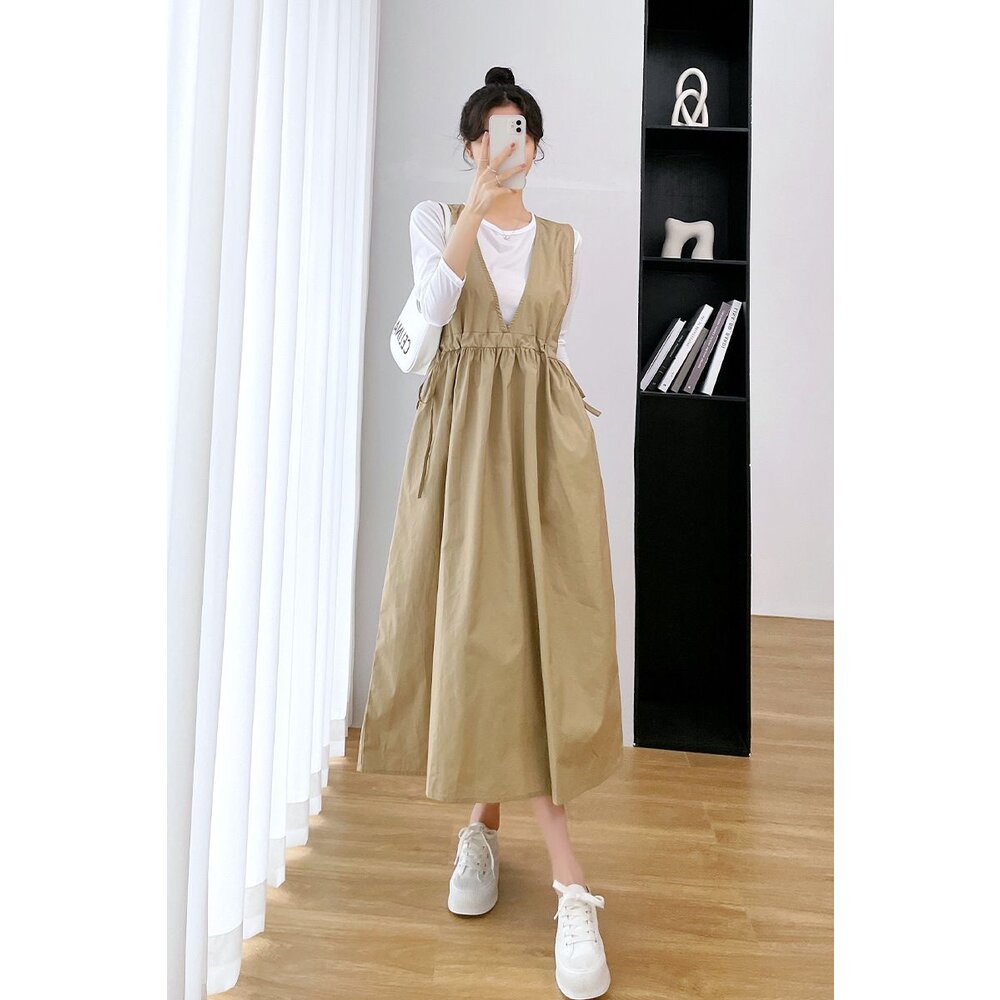 商品資訊/尺寸F/顏色.照片色/材質/成分.棉+人造纖維 尺寸規格.F./裙長.104公分/胸圍.108公分/ 商品會因不同批製作的因素,而有尺寸及顏色上些許落差,尺寸測量正負2公分為正常範圍內喔! 其他資料平放測量平面尺寸