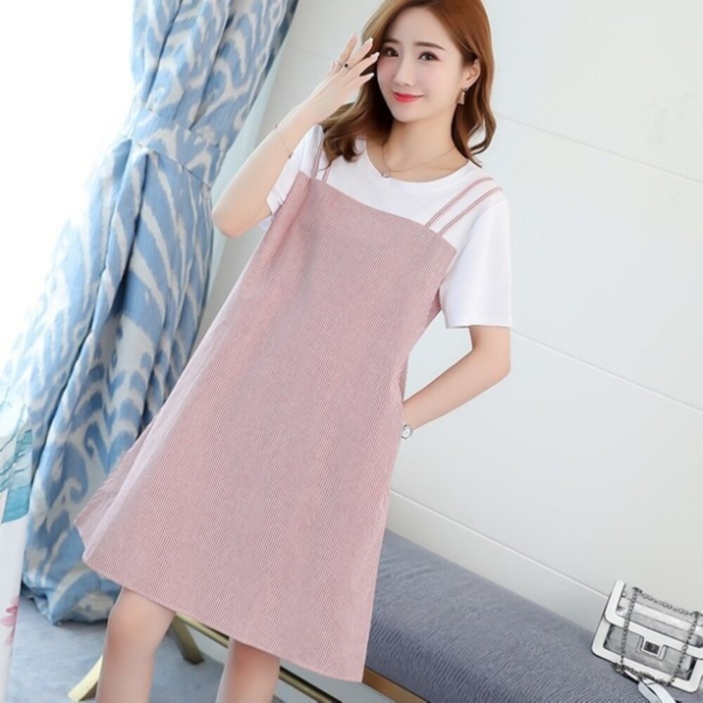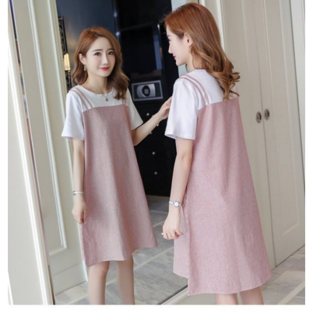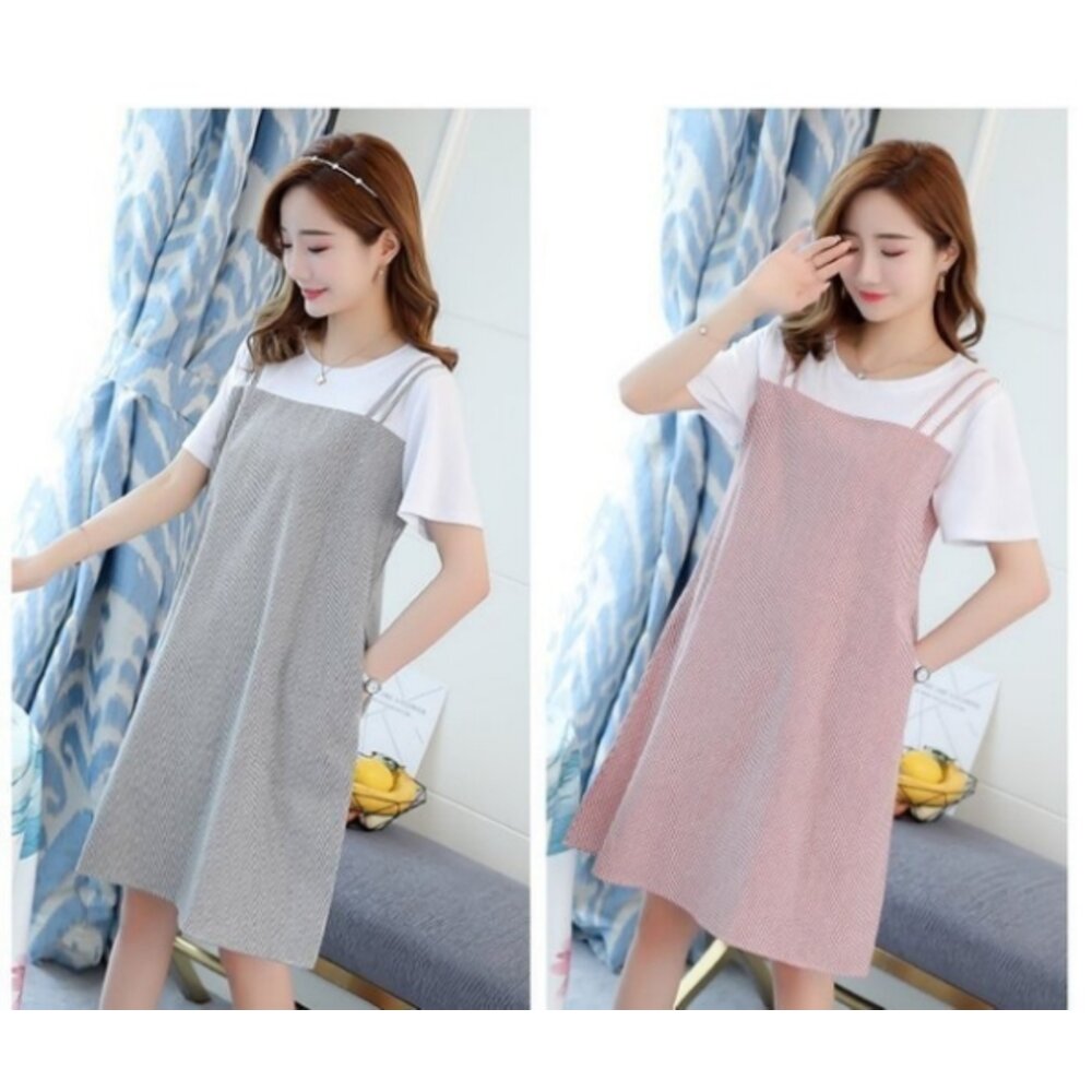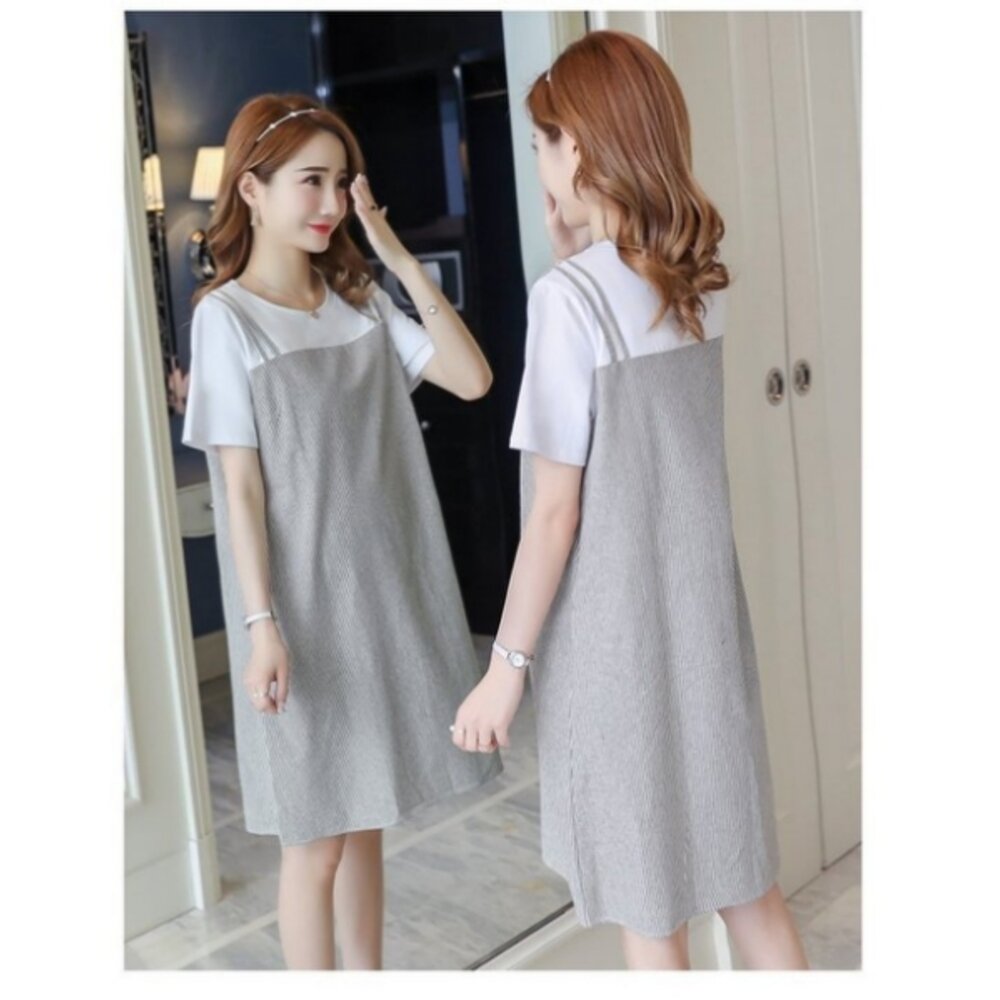 商品資訊/尺寸F/顏色.灰灰條紋色.紅紅條紋色/材質.薄棉料/ 尺寸.F.裙長91公分/肩寬.39公分/胸圍.104公分/袖長.21公分 商品會因不同批製作的因素,而有尺寸及顏色上些許落差,尺寸測量正負2公分為正常範圍內喔! 其他資料平放測量平面尺寸