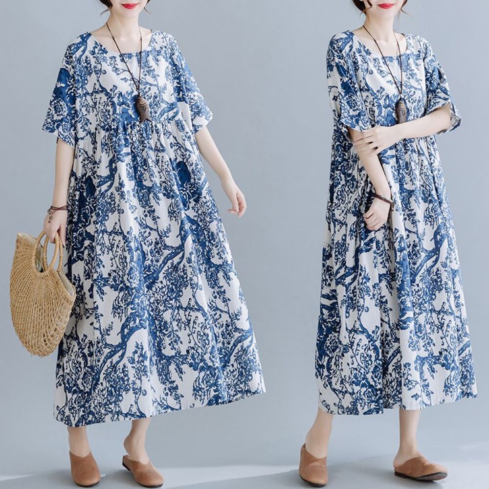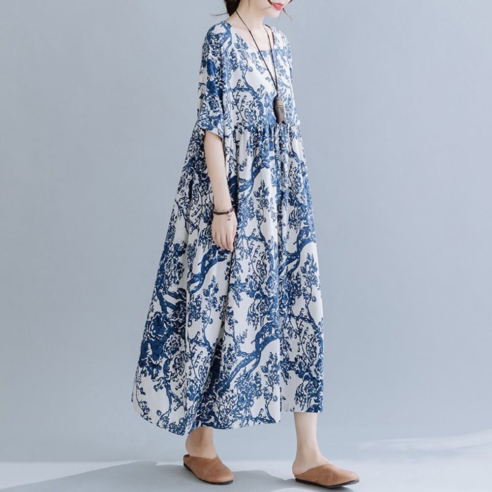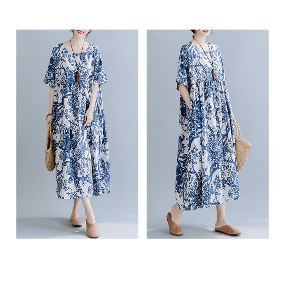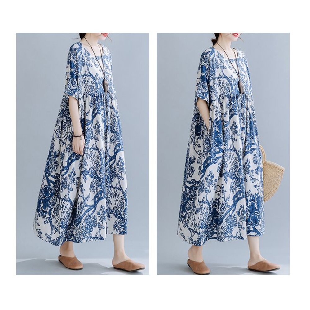商品資訊/尺寸F/顏色.照片色/材質.棉麻 尺寸. F./裙長120公分/胸圍.142公分/肩連袖/下擺圍.260公分 商品會因不同批製作的因素,而有尺寸及顏色上些許落差,尺寸測量正負2公分為正常範圍內喔! 其他資料平放測量平面尺寸