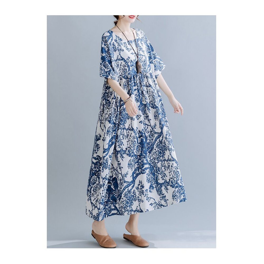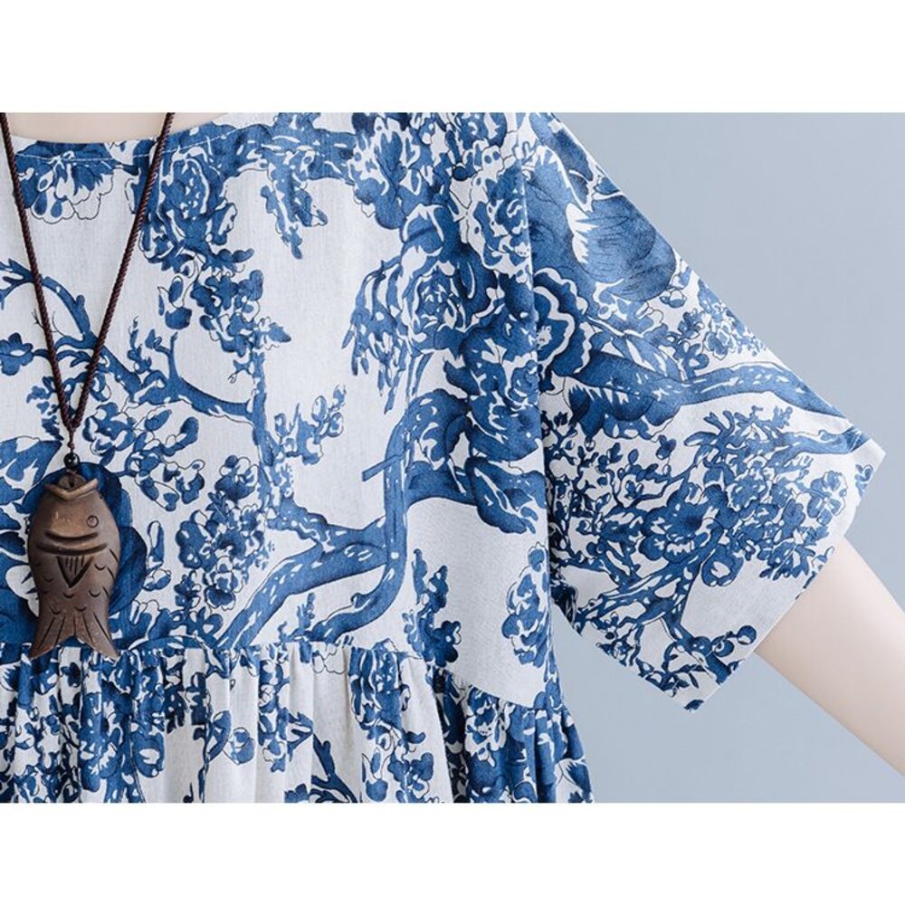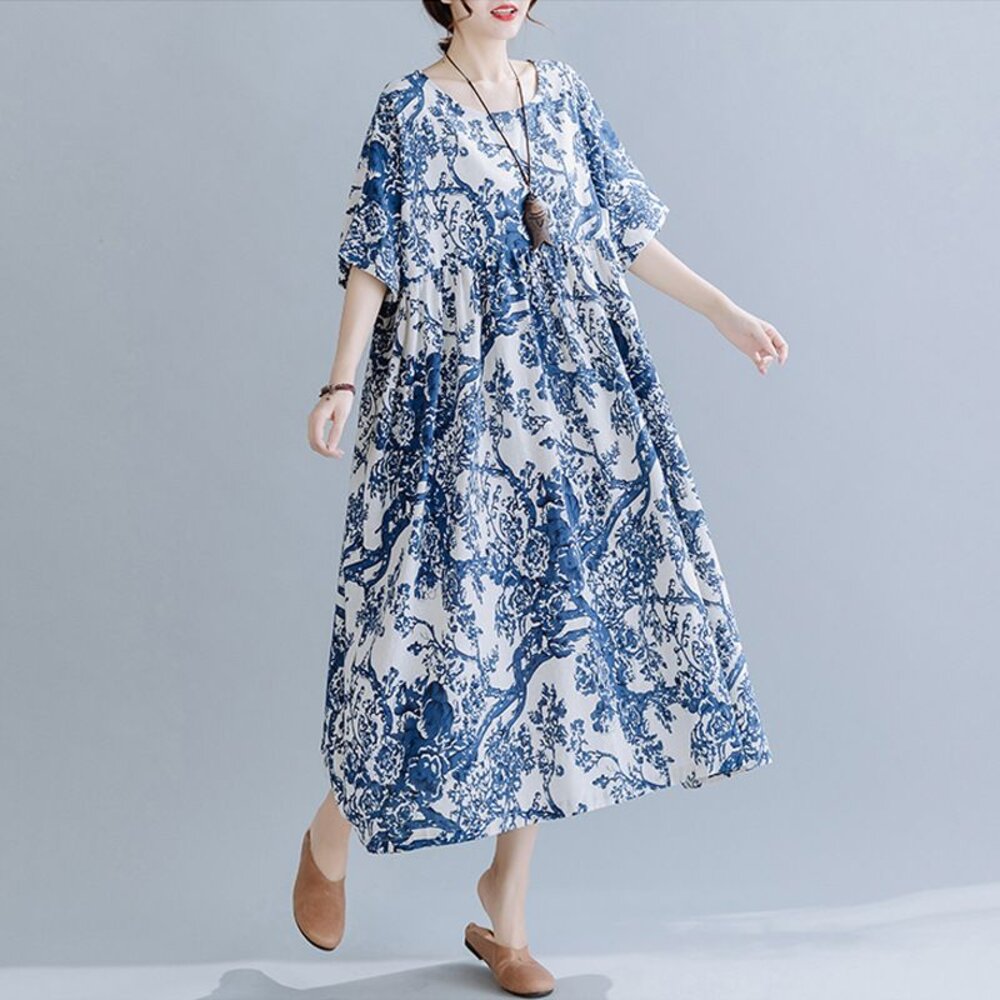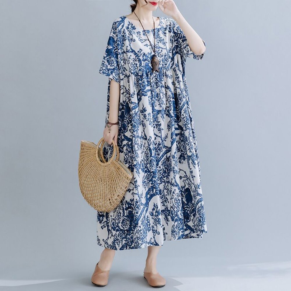商品資訊/尺寸F/顏色.照片色/材質.棉麻 尺寸. F./裙長120公分/胸圍.142公分/肩連袖/下擺圍.260公分 商品會因不同批製作的因素,而有尺寸及顏色上些許落差,尺寸測量正負2公分為正常範圍內喔! 其他資料平放測量平面尺寸