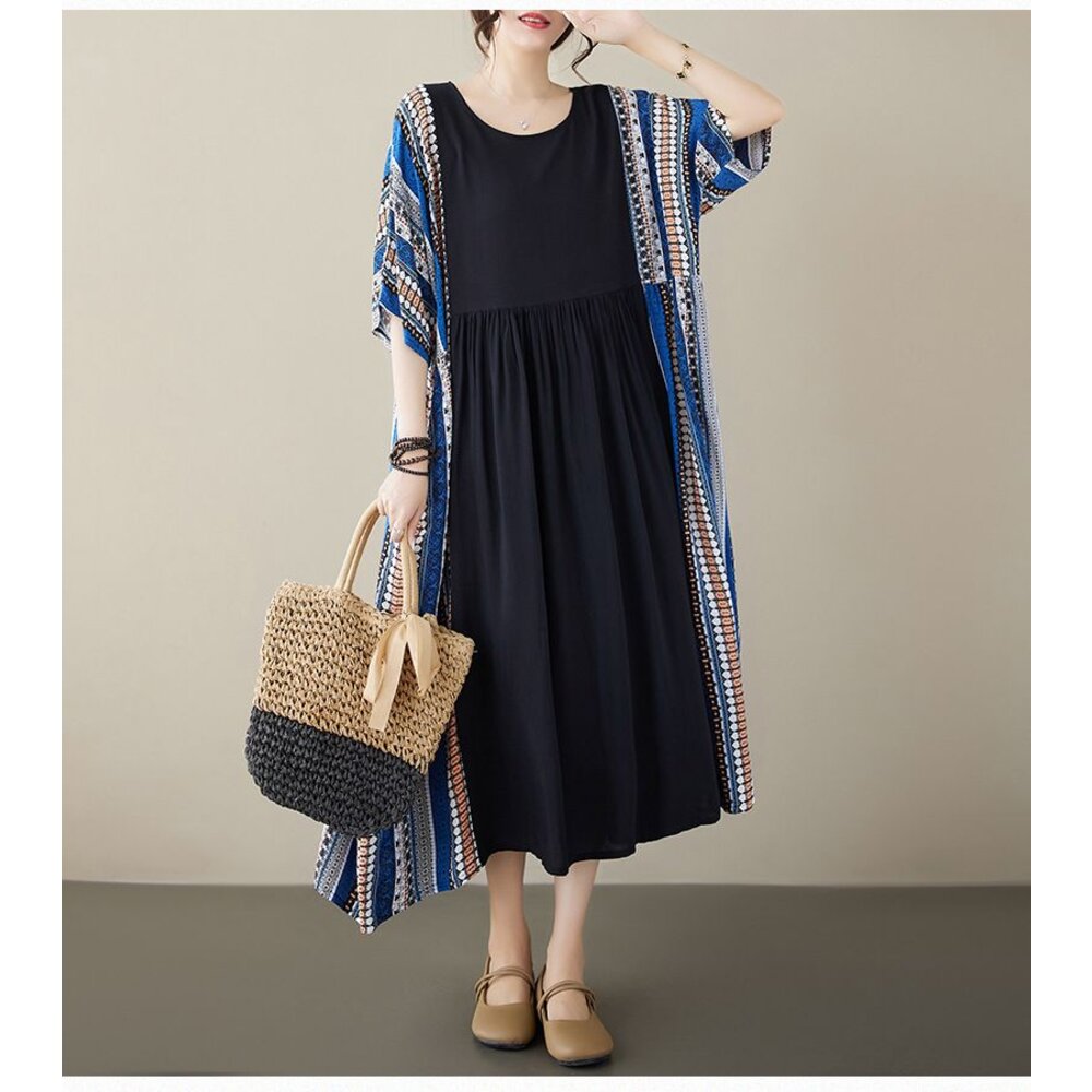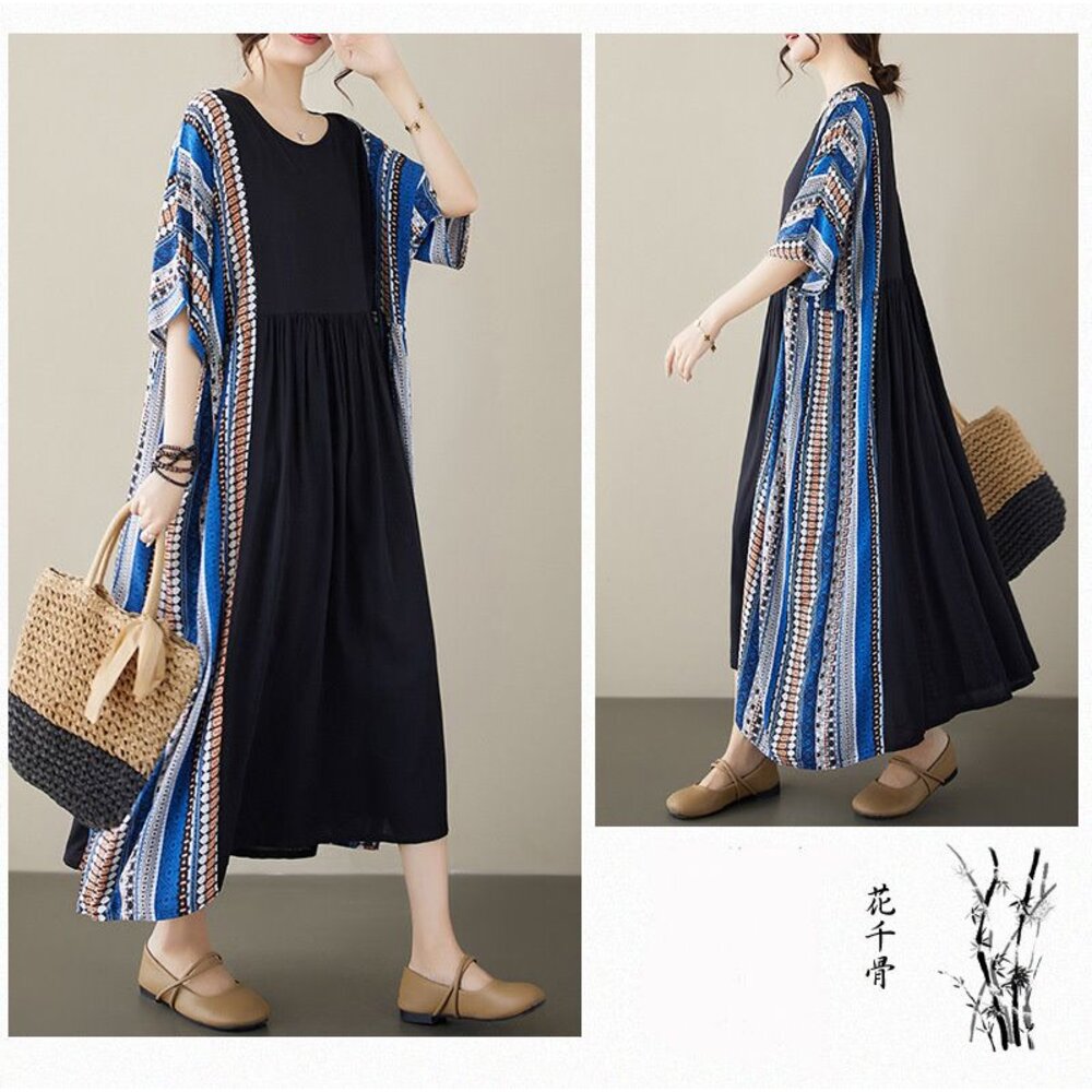 商品資訊/尺寸F/顏色.照片色/材質.棉/ 規格尺寸. F.裙長.120公分/胸圍.140公分/下擺.122公分/連肩袖.41公分 商品會因不同批製作的因素,而有尺寸及顏色上些許落差,尺寸測量正負2公分為正常範圍內喔! 其他資料平放測量平面尺寸