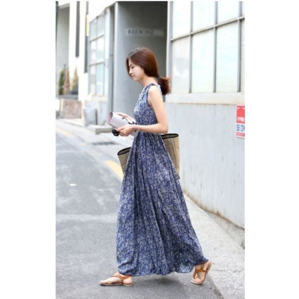 【D5012YB】 M碼 夏日 波西米亞 無袖 縲縈 長裙 無袖 碎花 長洋裝 連衣裙 洋裝 韓系-圖片-9