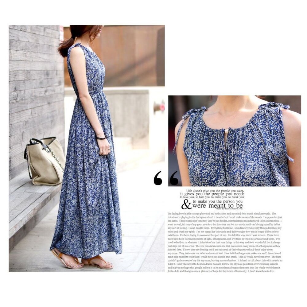 【D5012YB】 M碼 夏日 波西米亞 無袖 縲縈 長裙 無袖 碎花 長洋裝 連衣裙 洋裝 韓系-圖片-6