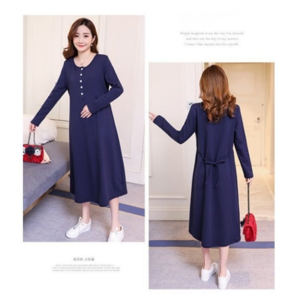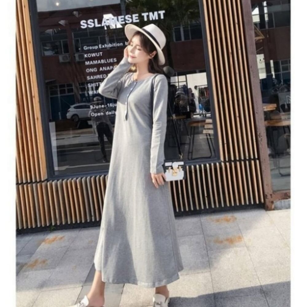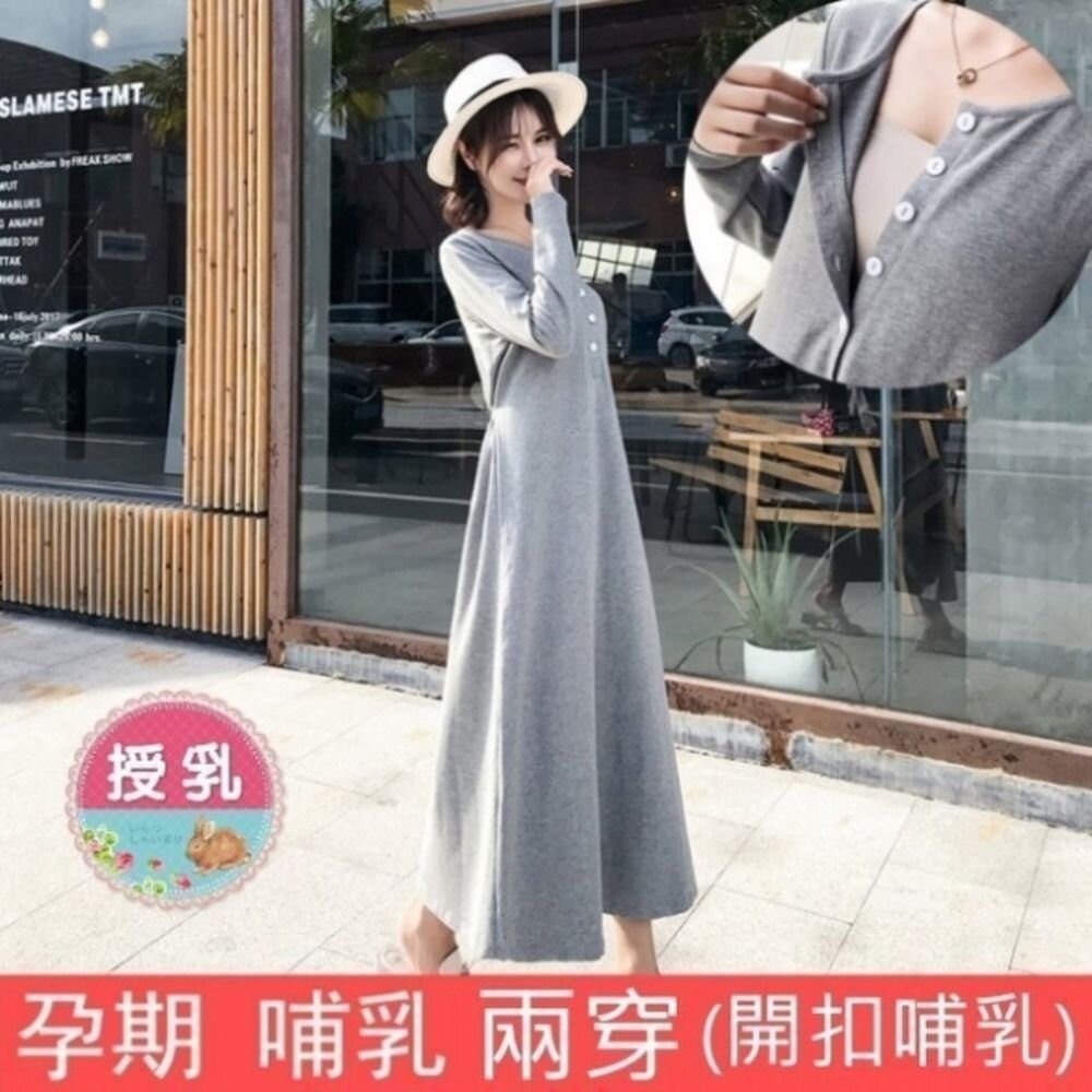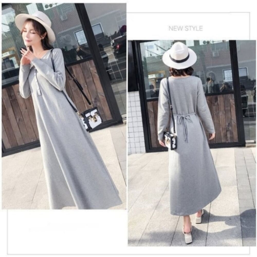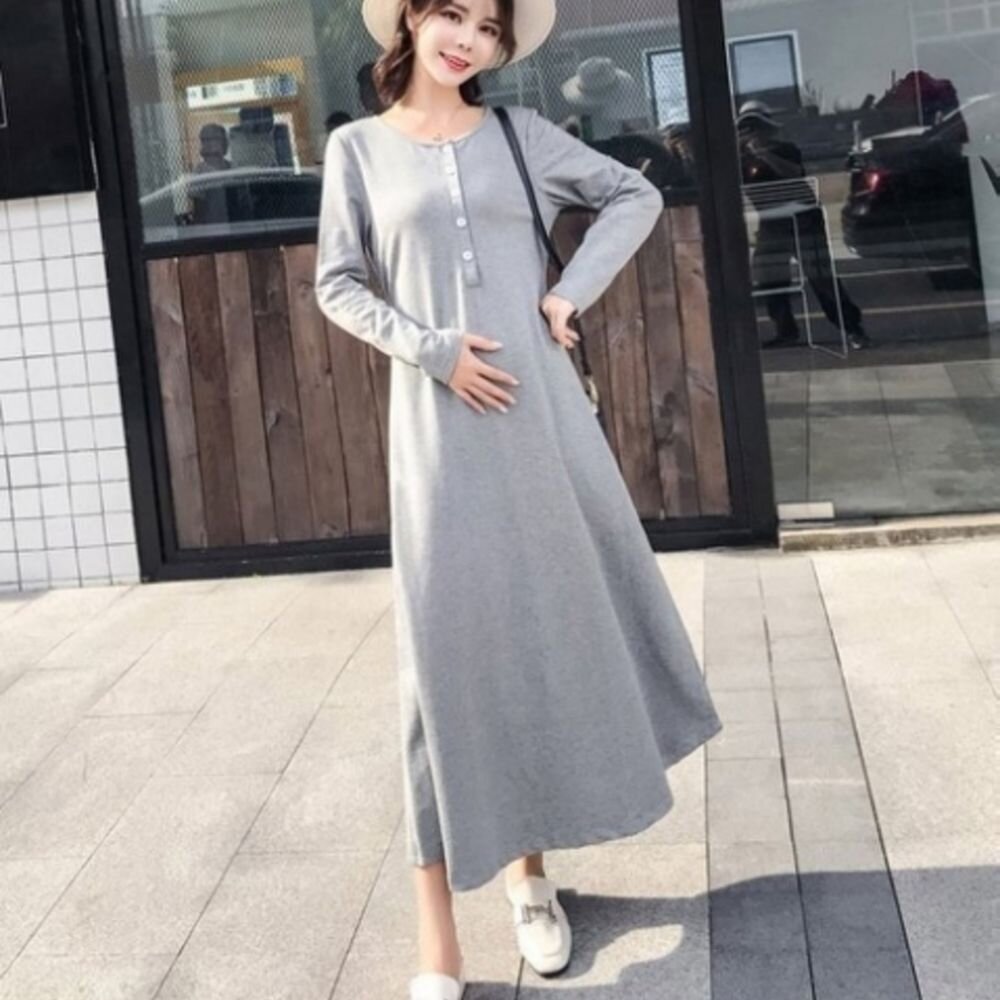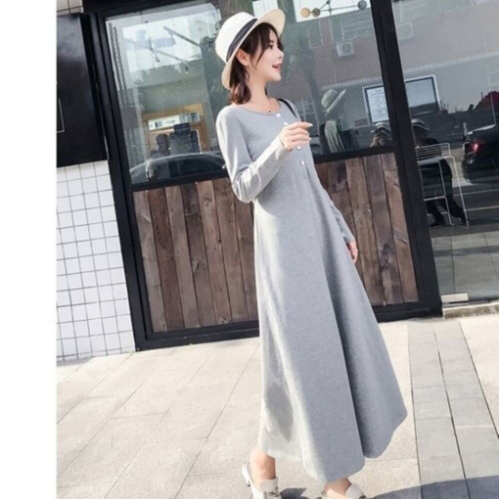 商品資訊/尺寸F/顏色.灰色.黑色.藍色/材質.棉 尺寸.F./裙長.112公分/胸圍.98公分/袖長.57.5公分/袖口.23公分/肩寬.38公分/下擺.168公分 商品會因不同批製作的因素,而有尺寸及顏色上些許落差,尺寸測量正負2公分為正常範圍內喔! 其他資料平放測量平面尺寸