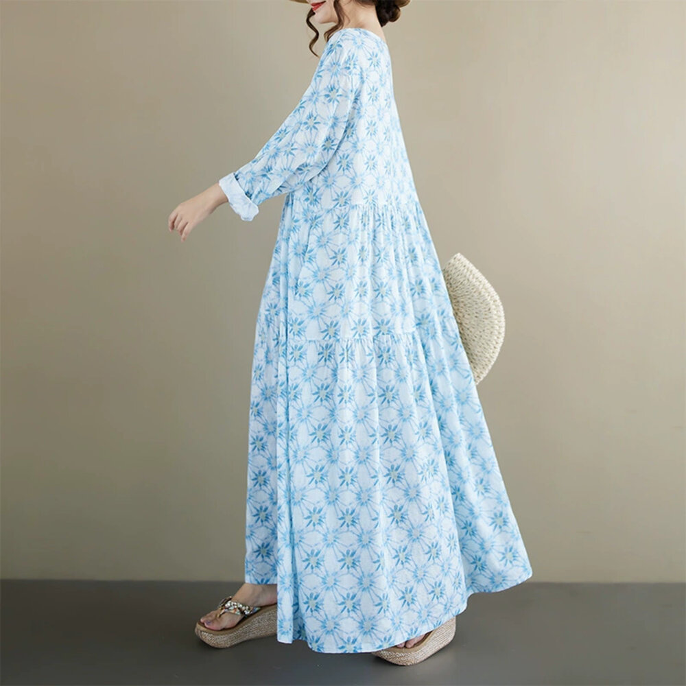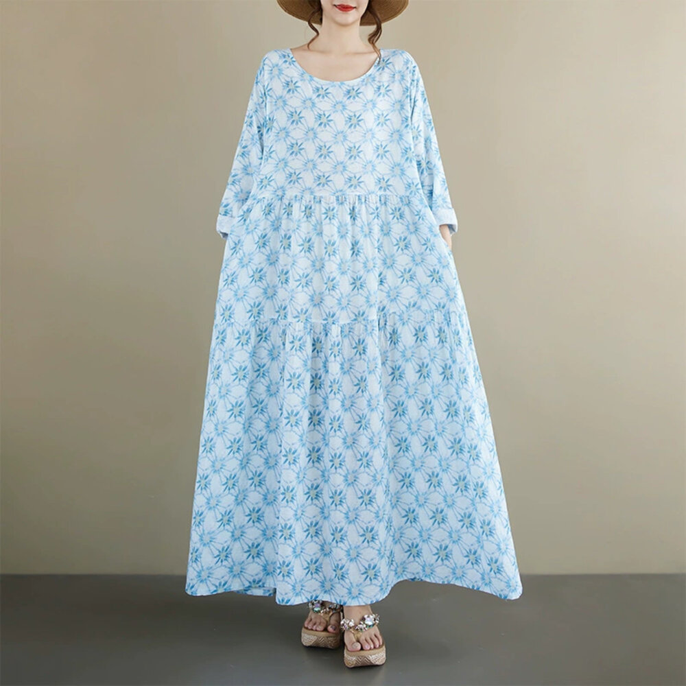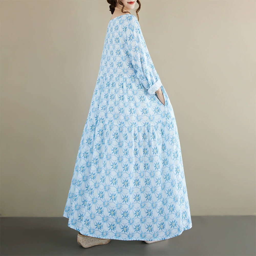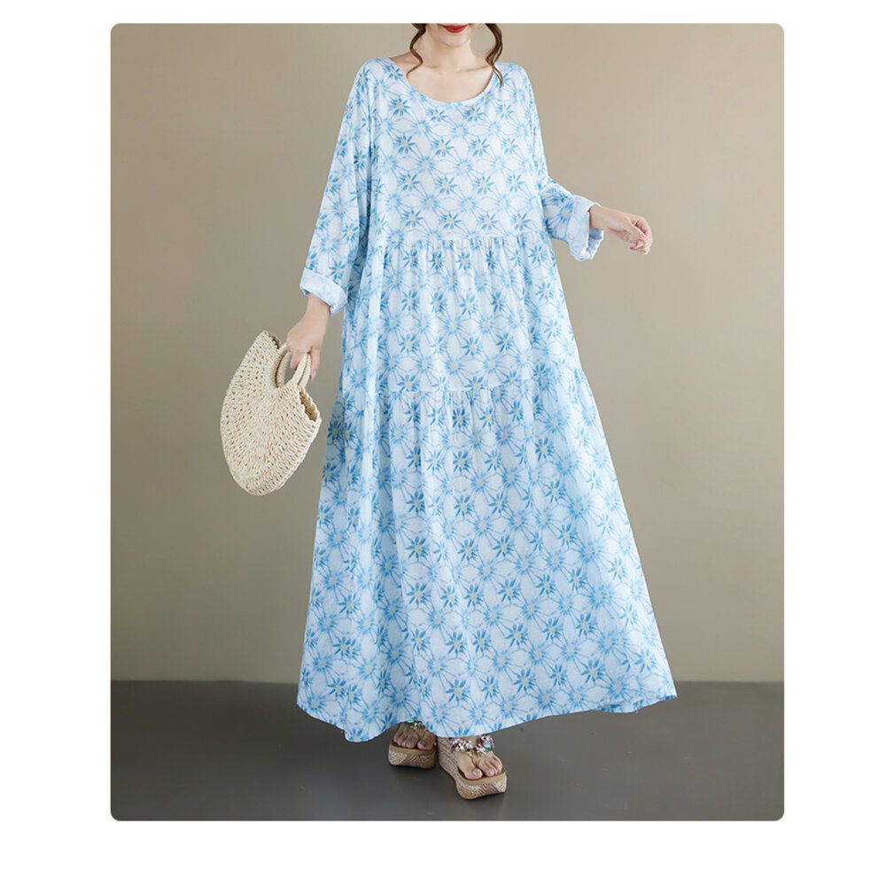 商品資訊/尺寸F/顏色.照片色/材質.棉 尺寸. F./裙長130公分/胸圍.122公分/袖長.61公分/肩寬.44公分 商品會因不同批製作的因素,而有尺寸及顏色上些許落差,尺寸測量正負2公分為正常範圍內喔! 其他資料平放測量平面尺寸