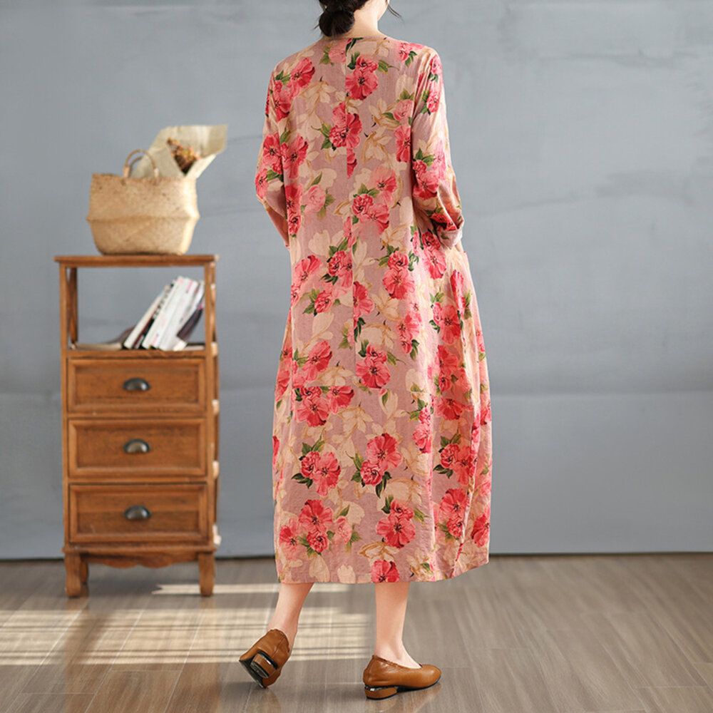 商品資訊/尺寸F/顏色.照片色/材質.棉+人造纖維 尺寸. F./裙長117公分/胸圍.115公分/袖長.55公分/肩寬.42公分 商品會因不同批製作的因素,而有尺寸及顏色上些許落差,尺寸測量正負2公分為正常範圍內喔! 其他資料平放測量平面尺寸