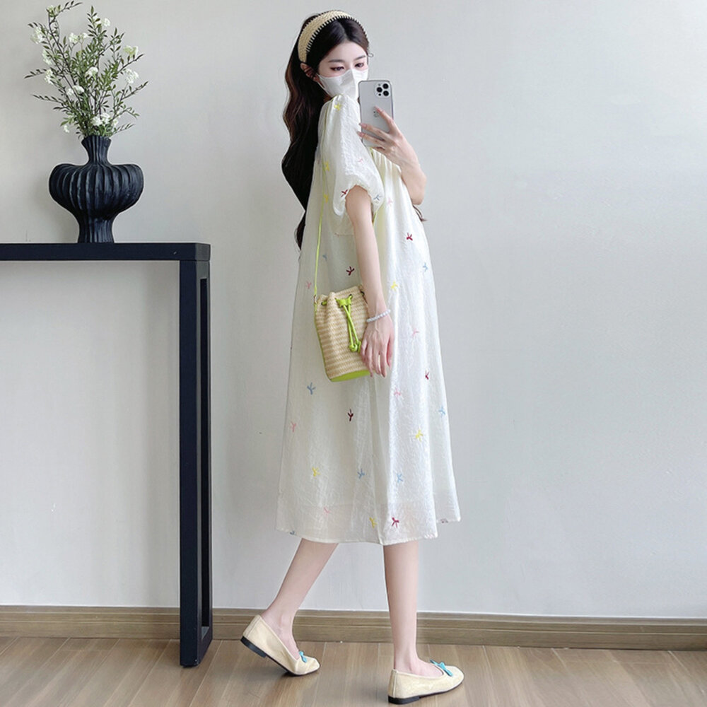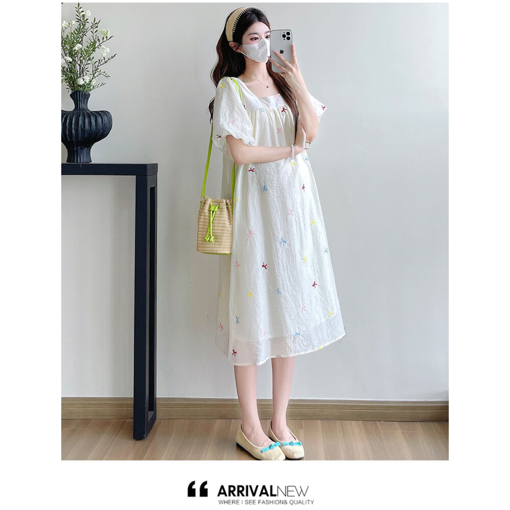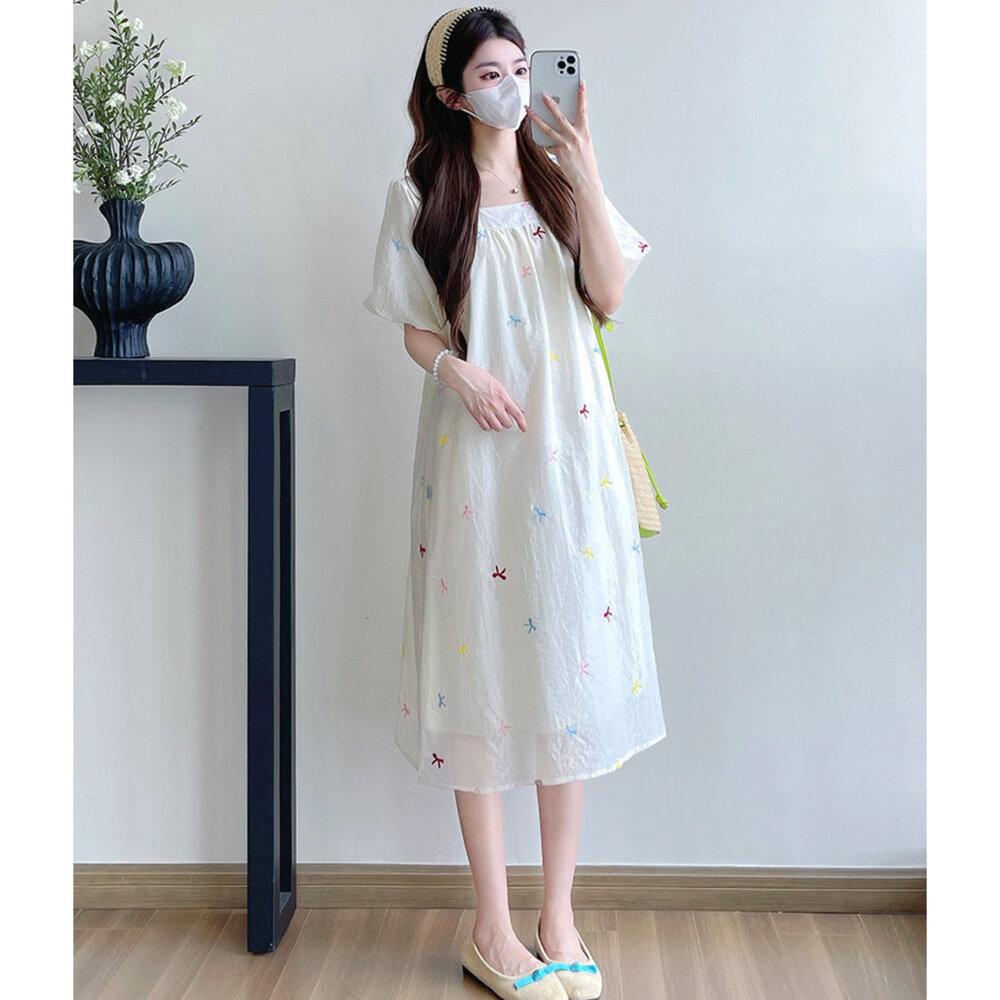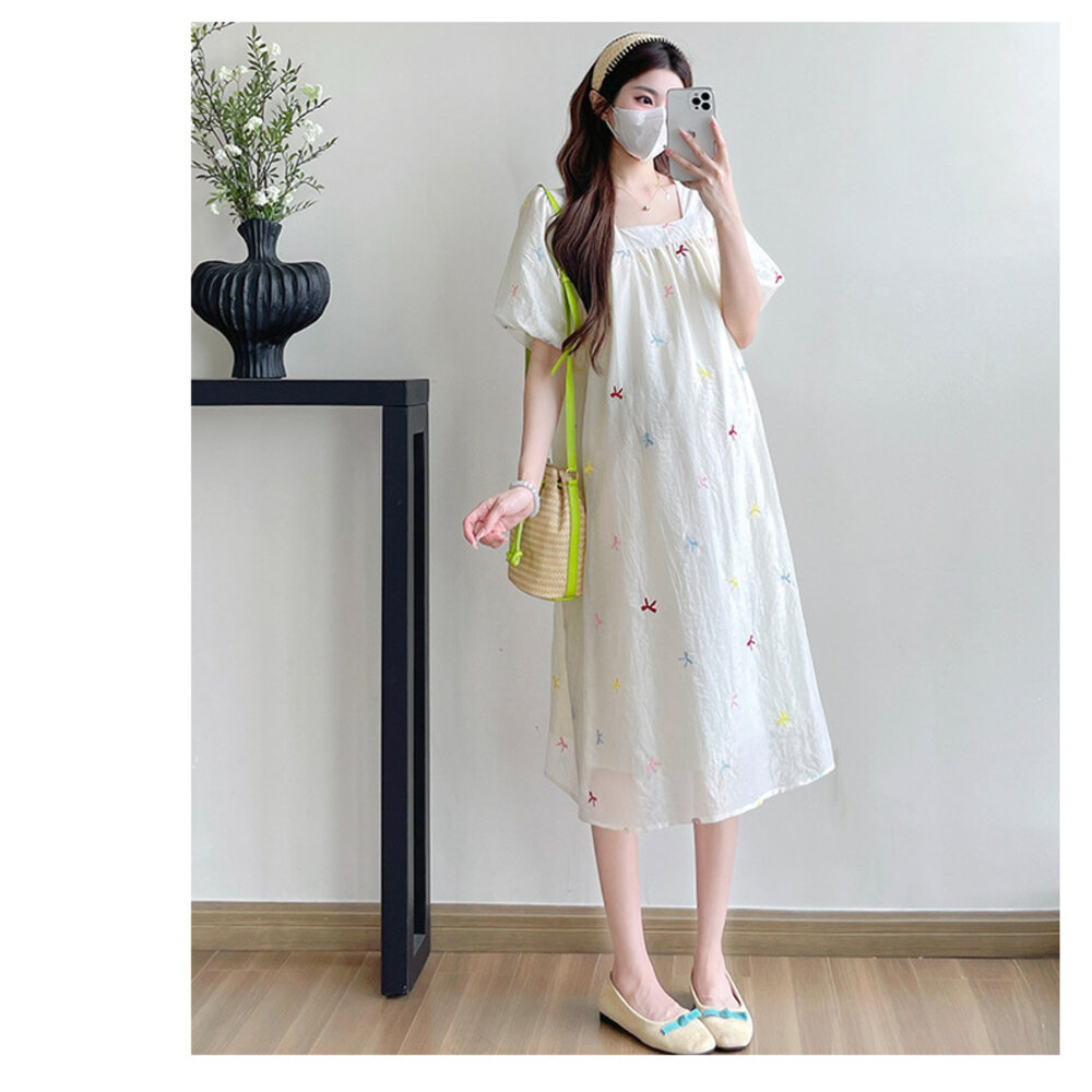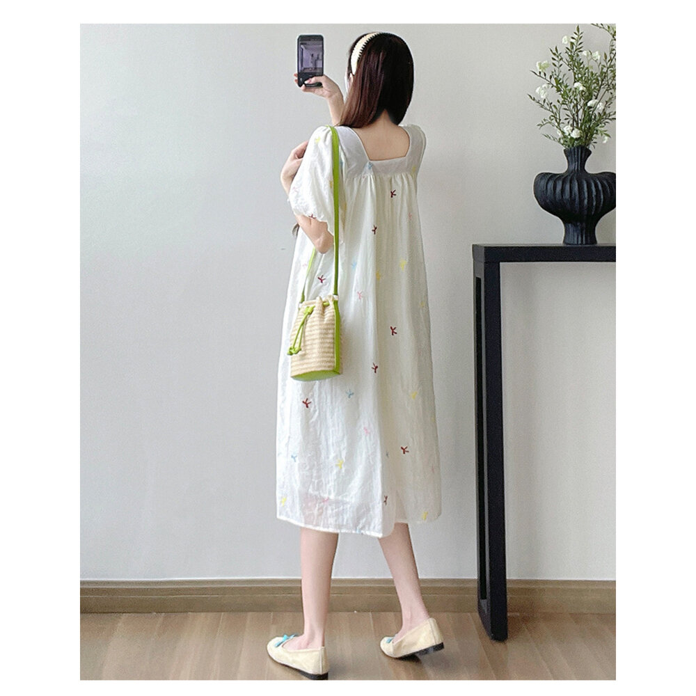 商品資訊/尺寸.F/顏色.照片色/材質/成分.棉+人造纖維 規格/尺寸.F.裙長.110公分/胸圍.104公分/肩袖長.36公分/ 商品會因不同批製作的因素,而有尺寸及顏色上些許落差,尺寸測量正負2公分為正常範圍內喔! 其他資料平放測量平面尺寸