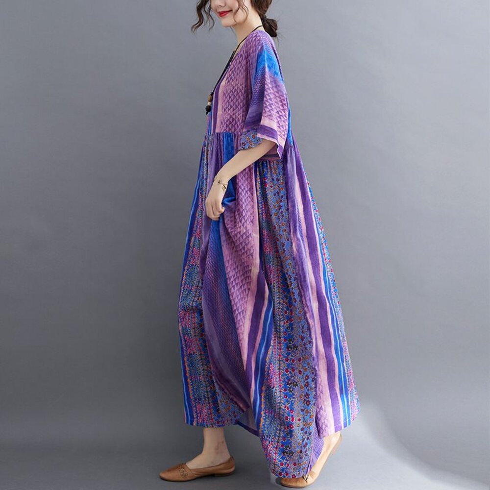 商品資訊/尺寸F/顏色.照片色/材質.棉麻 尺寸. F./裙長120公分/胸圍.142公分/裙襬.130公分/連肩袖 商品會因不同批製作的因素,而有尺寸及顏色上些許落差,尺寸測量正負2公分為正常範圍內喔! 其他資料平放測量平面尺寸