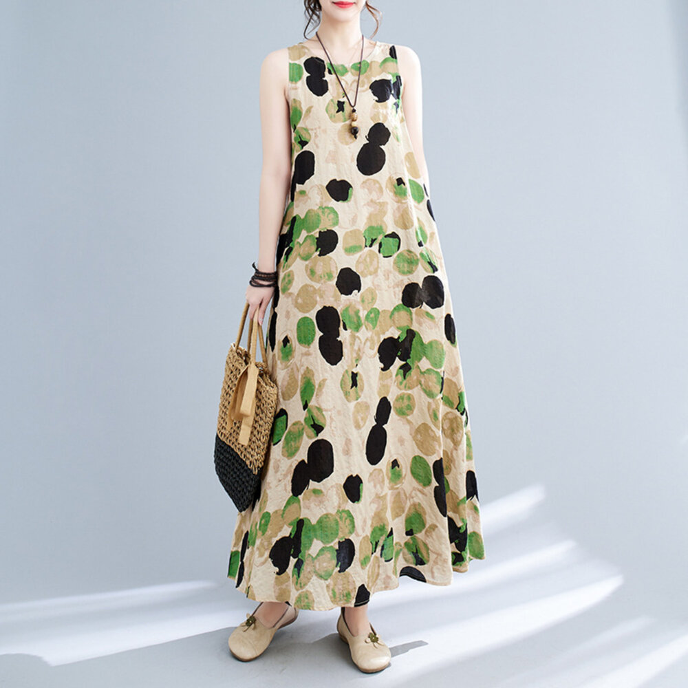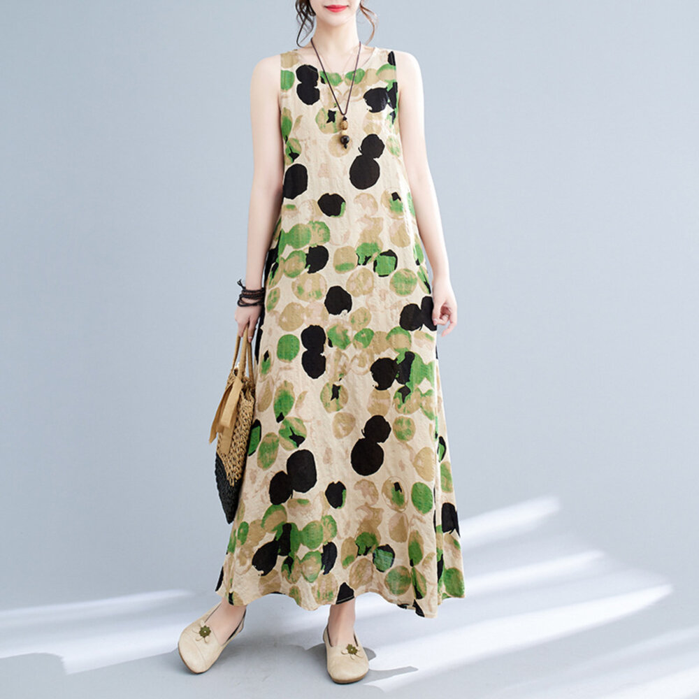 商品資訊/尺寸.F/顏色.照片色/材質.棉+人造纖維 尺寸. F./裙長.129公分/胸圍.116公分/肩寬.34公分 商品會因不同批製作的因素,而有尺寸及顏色上些許落差,尺寸測量正負2公分為正常範圍內喔! 其他資料平放測量平面尺寸