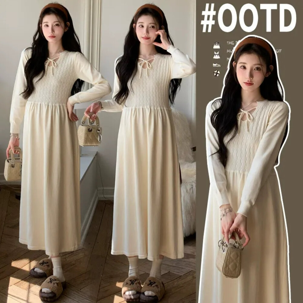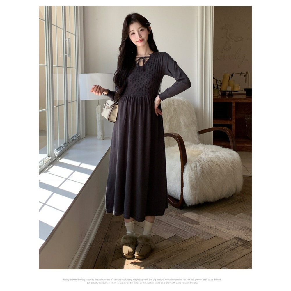 商品資訊/尺寸F/顏色.照片色/材質.針織 尺寸.F./裙長.118公分/胸圍.80公分/袖長.62公分/肩寬.35公分/ 商品會因不同批製作的因素,而有尺寸及顏色上些許落差,尺寸測量正負2公分為正常範圍內喔! 其他資料平放測量平面尺寸