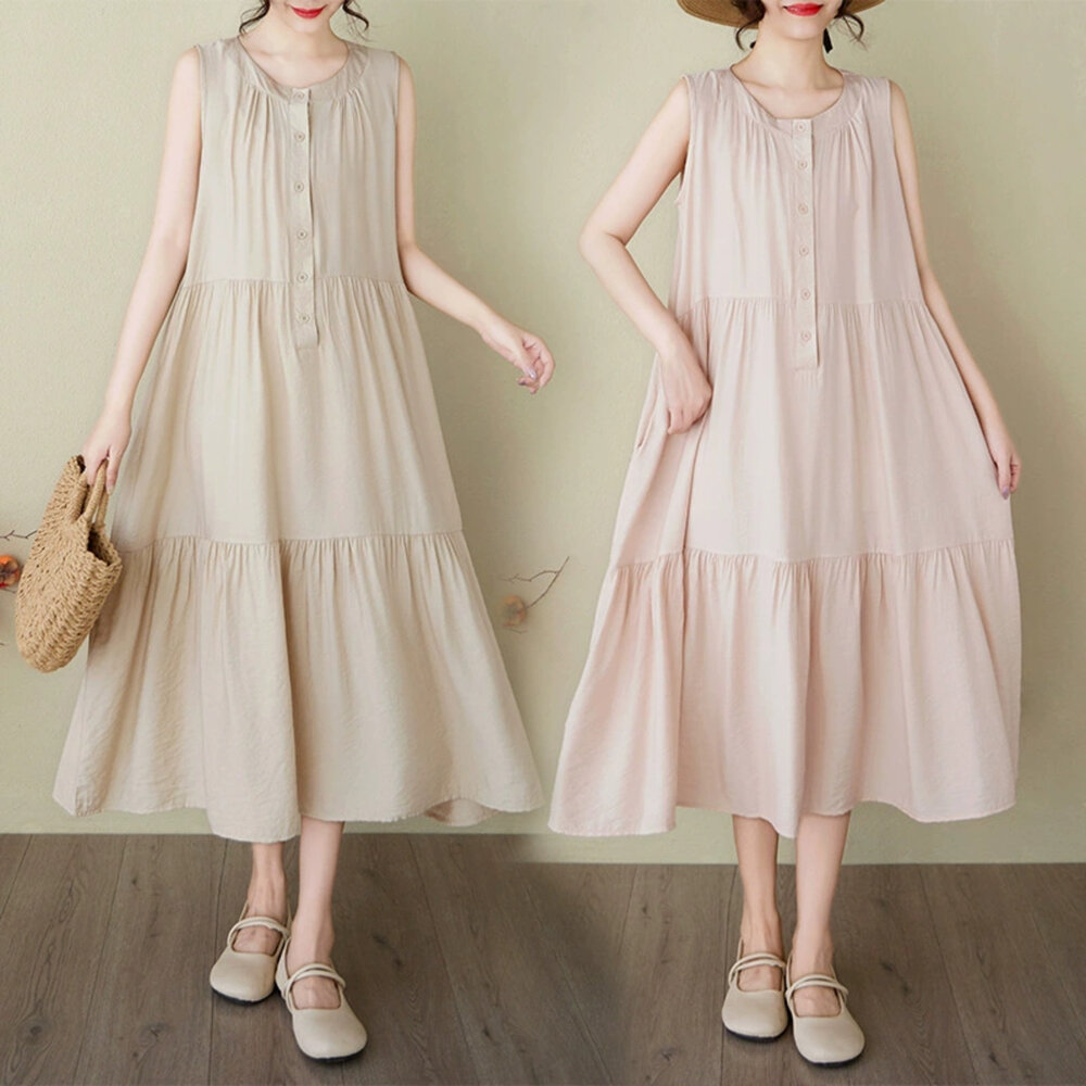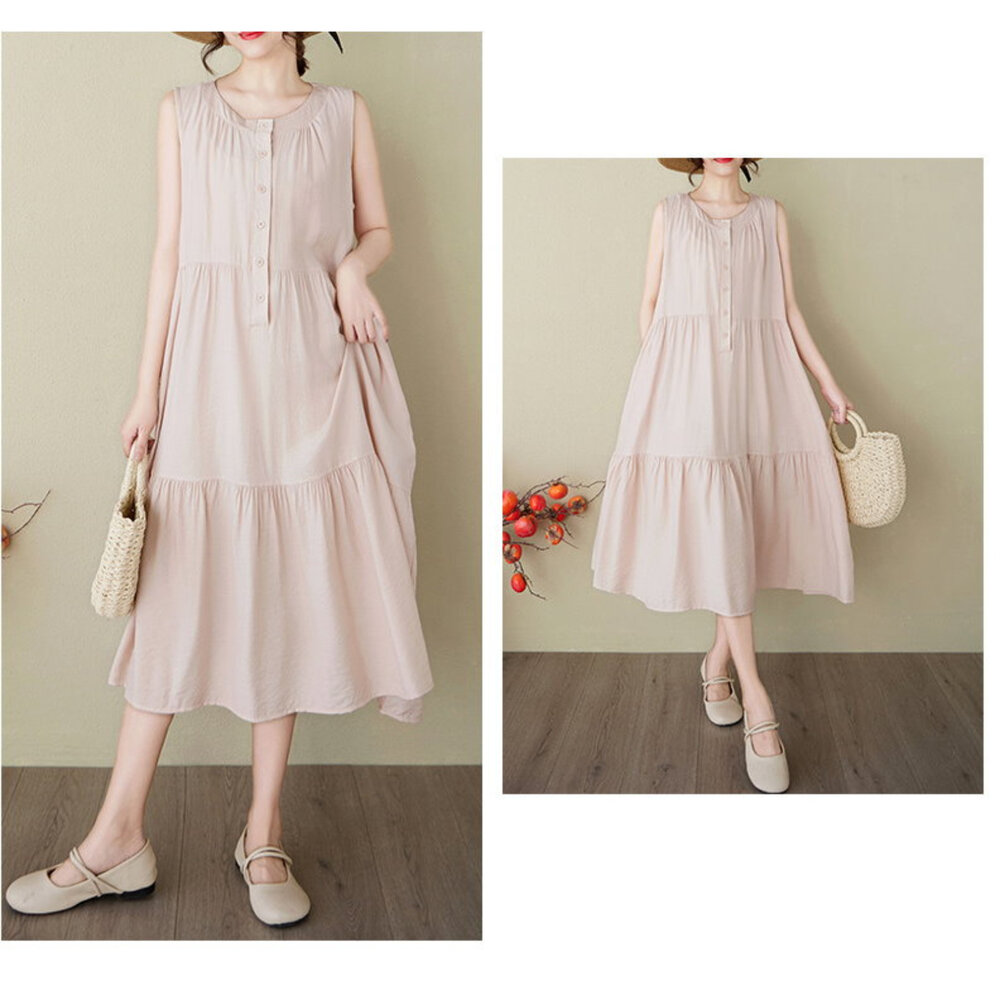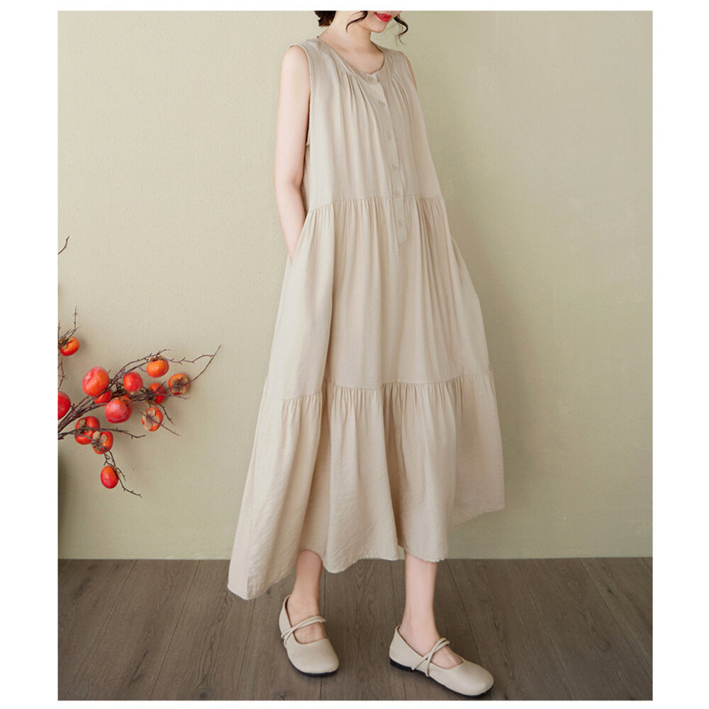 商品資訊/尺寸.F/顏色.照片色/材質.棉+人造纖維 尺寸. F./裙長.115公分/胸圍.110公分/肩寬.40公分 商品會因不同批製作的因素,而有尺寸及顏色上些許落差,尺寸測量正負2公分為正常範圍內喔! 其他資料平放測量平面尺寸
