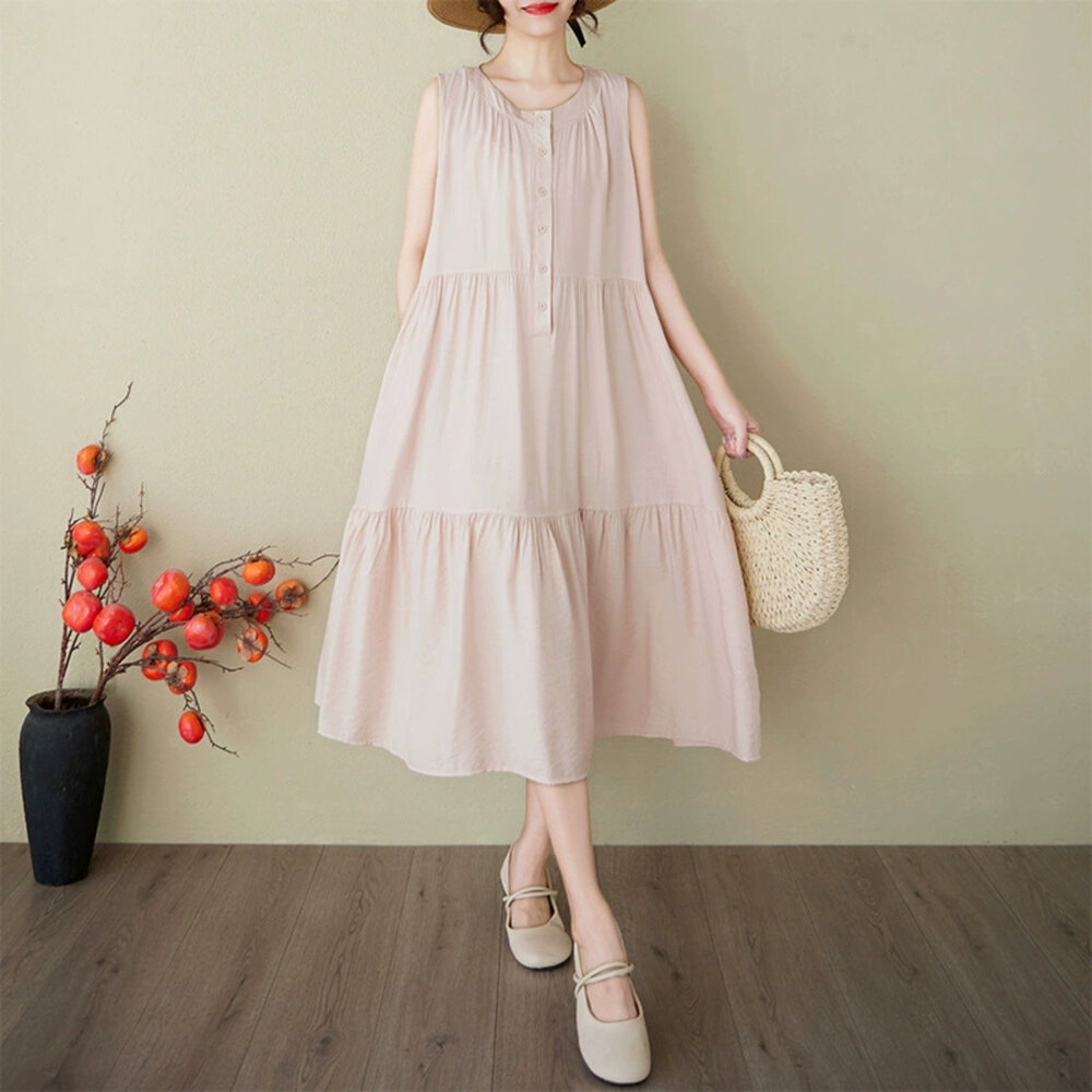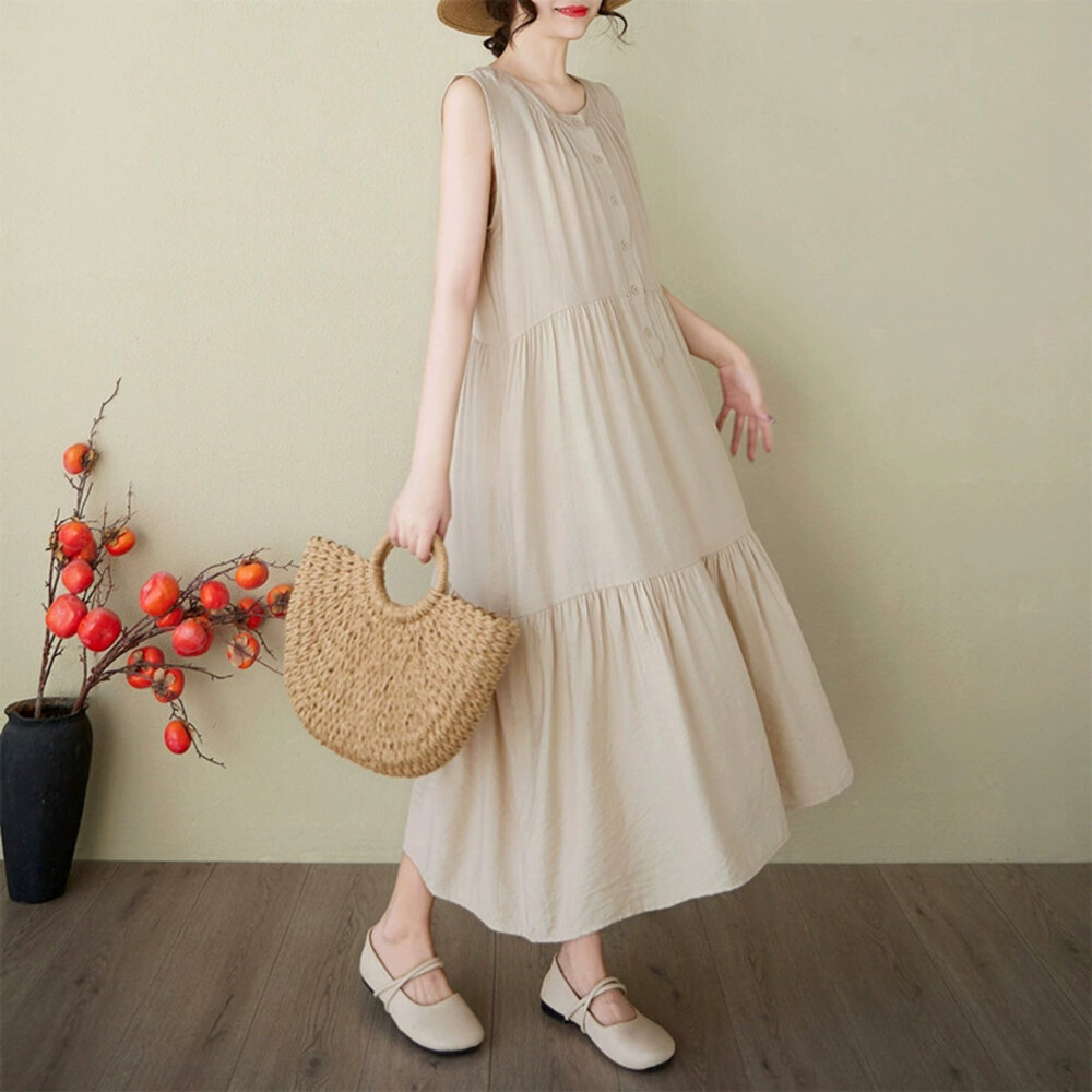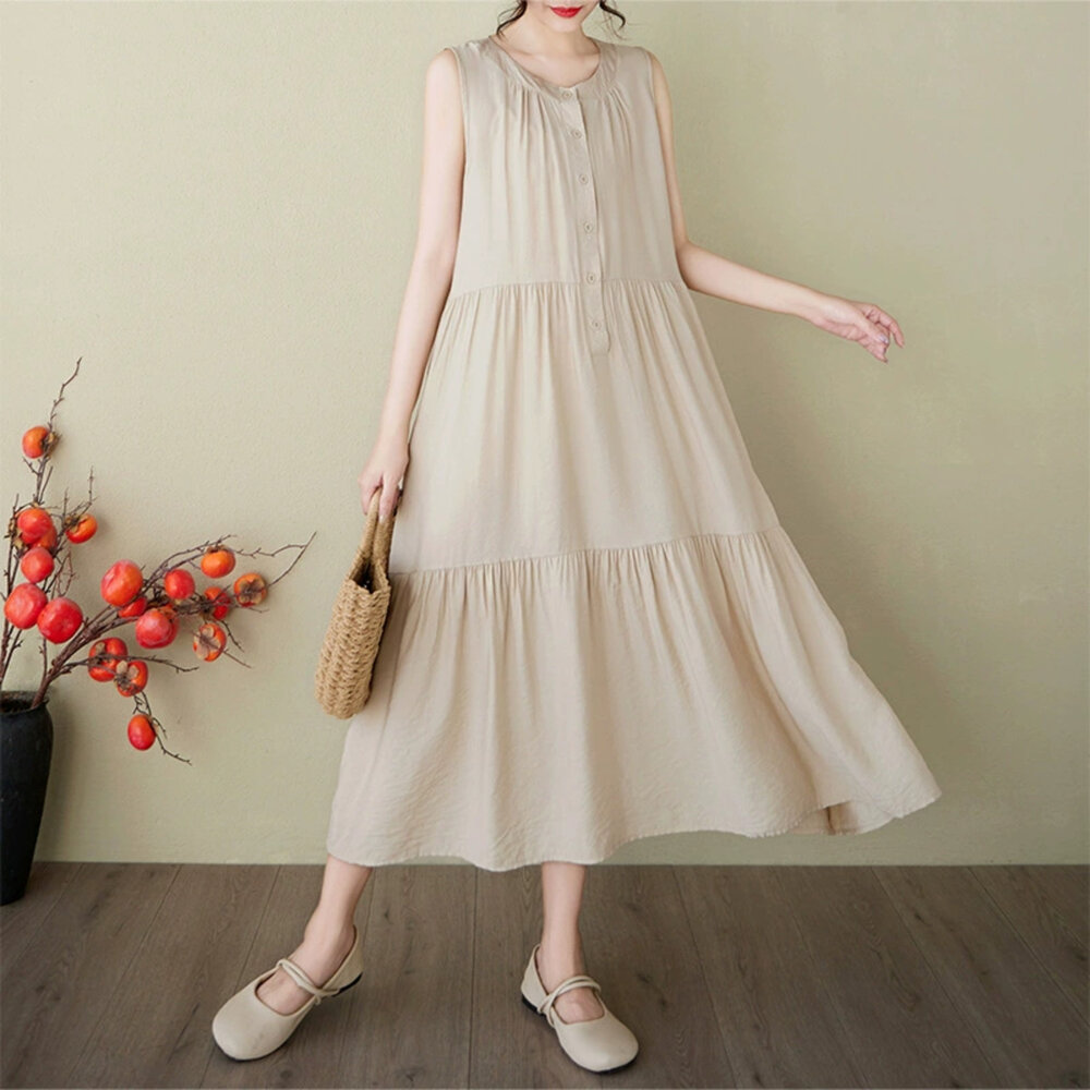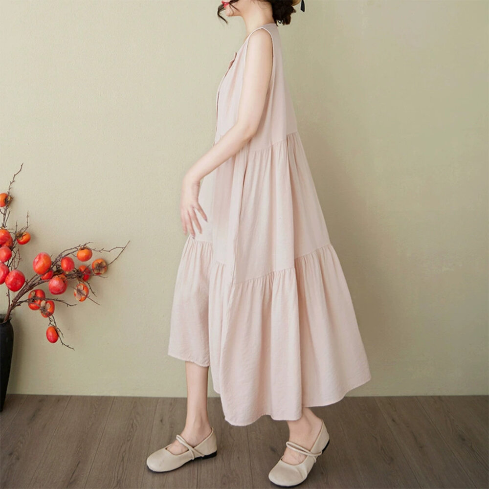 商品資訊/尺寸.F/顏色.照片色/材質.棉+人造纖維 尺寸. F./裙長.115公分/胸圍.110公分/肩寬.40公分 商品會因不同批製作的因素,而有尺寸及顏色上些許落差,尺寸測量正負2公分為正常範圍內喔! 其他資料平放測量平面尺寸