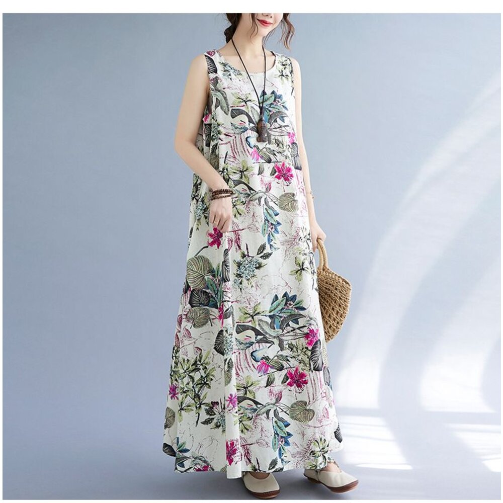 商品資訊/尺寸.F/顏色.照片色/材質.棉麻 尺寸. F./裙長.127公分/胸圍.106公分/肩寬.32公分 商品會因不同批製作的因素,而有尺寸及顏色上些許落差,尺寸測量正負2公分為正常範圍內喔! 其他資料平放測量平面尺寸