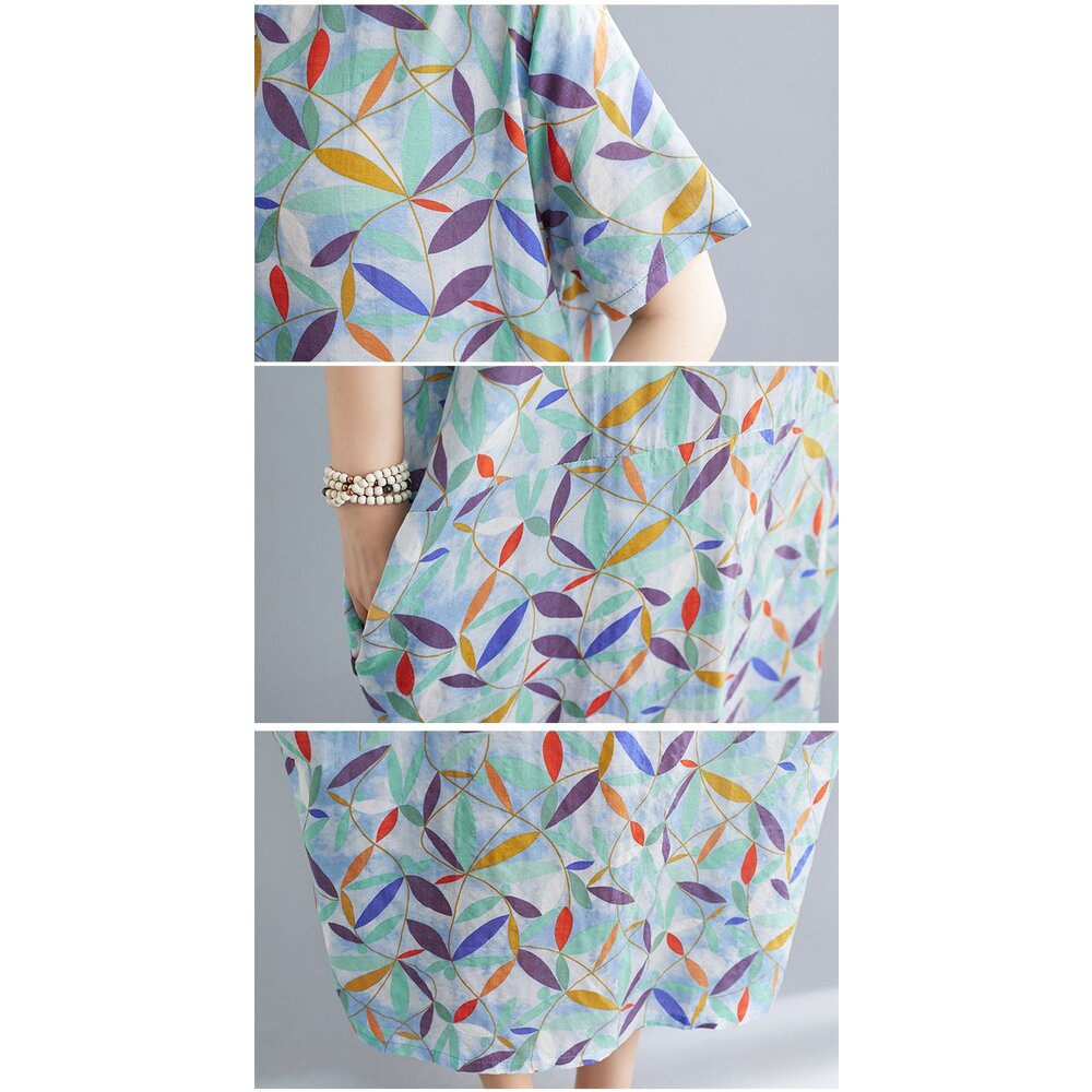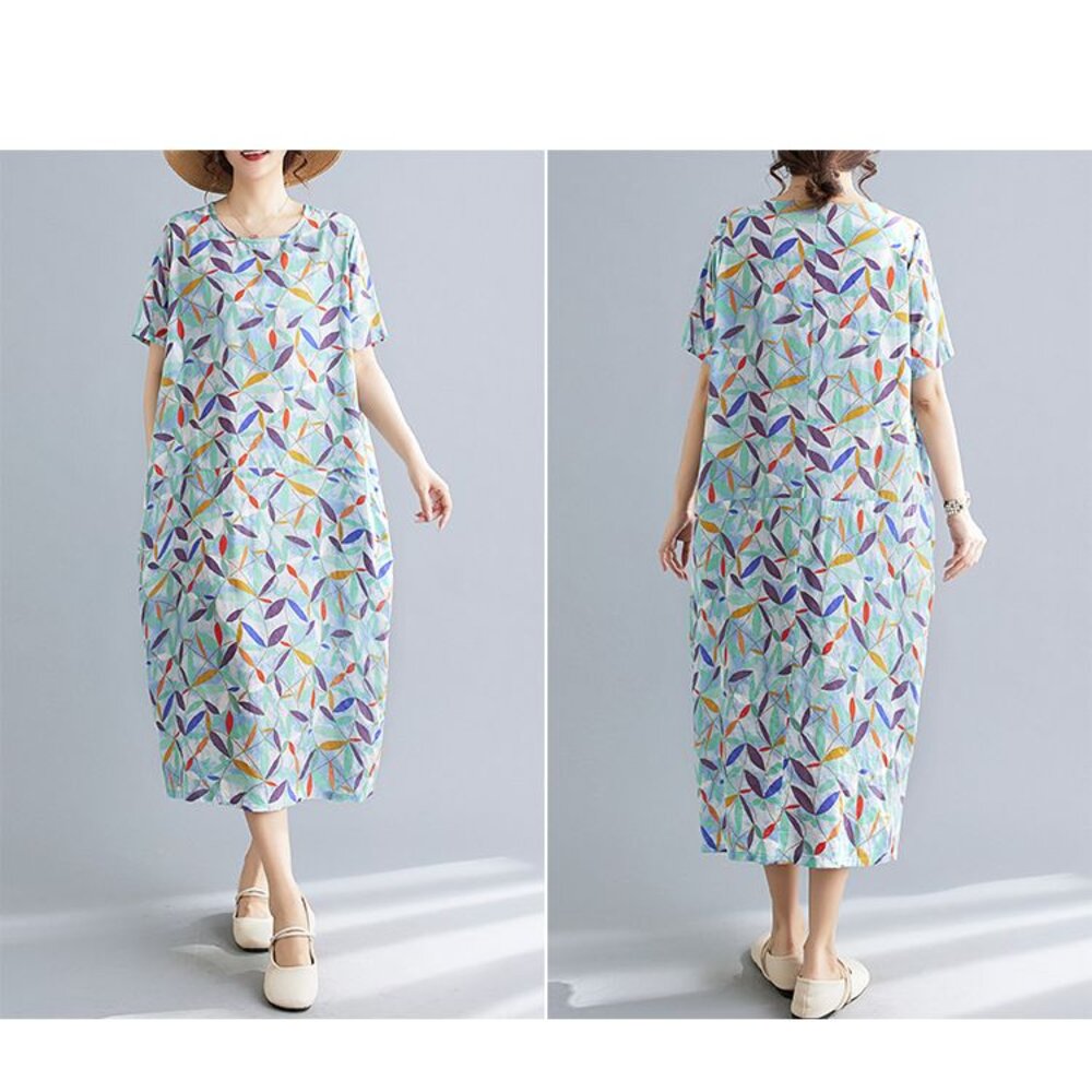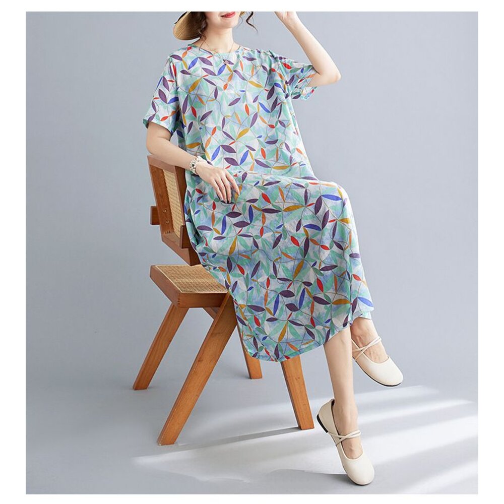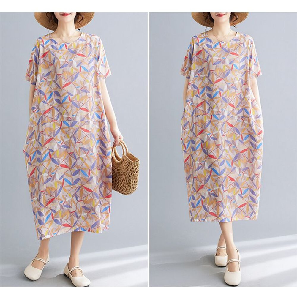 商品資訊/尺寸F/顏色.照片色/材質.棉麻/ 規格尺寸. F.裙長.114公分/胸圍.122公分/袖長.23公分/肩寬.40公分 商品會因不同批製作的因素,而有尺寸及顏色上些許落差,尺寸測量正負2公分為正常範圍內喔! 其他資料平放測量平面尺寸