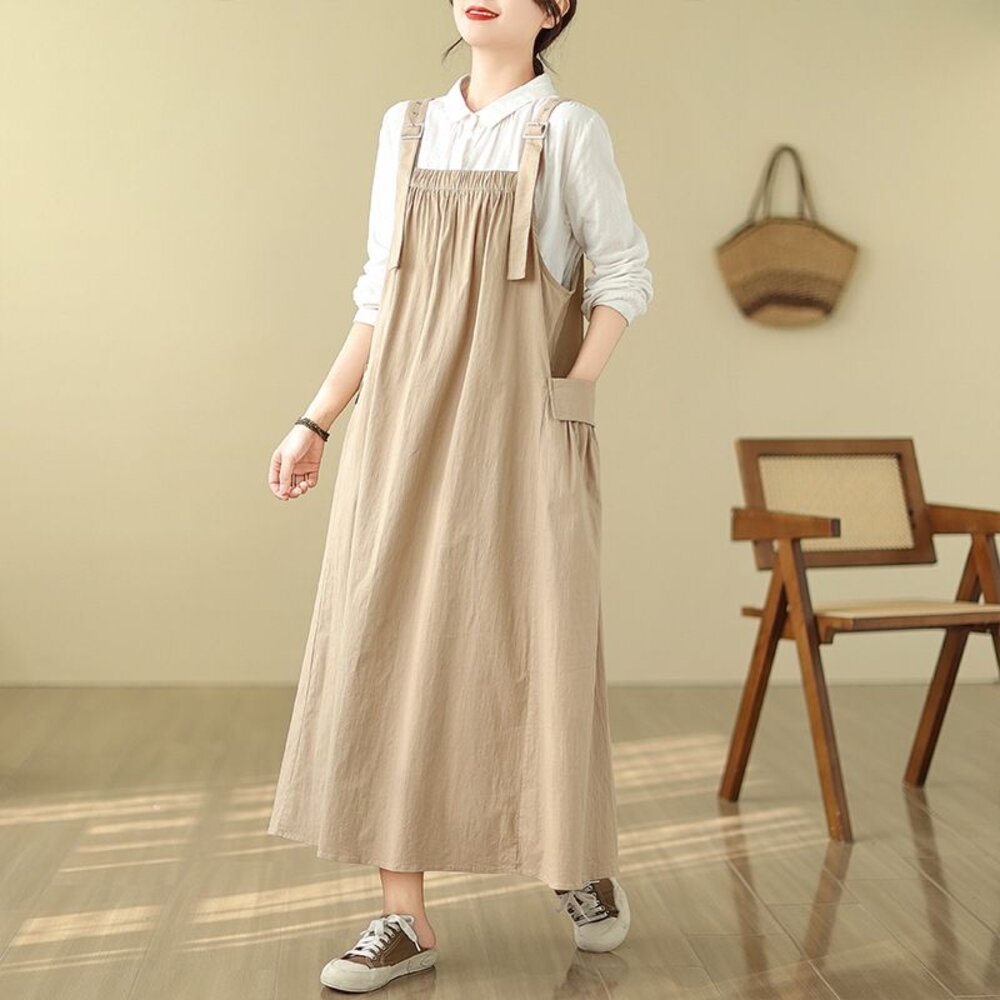 商品資訊/尺寸F/顏色.卡其色/材質/成分.棉+人造纖維 尺寸規格.F./全長.114公分/胸圍.134公分/ 商品會因不同批製作的因素,而有尺寸及顏色上些許落差,尺寸測量正負2公分為正常範圍內喔! 其他資料平放測量平面尺寸