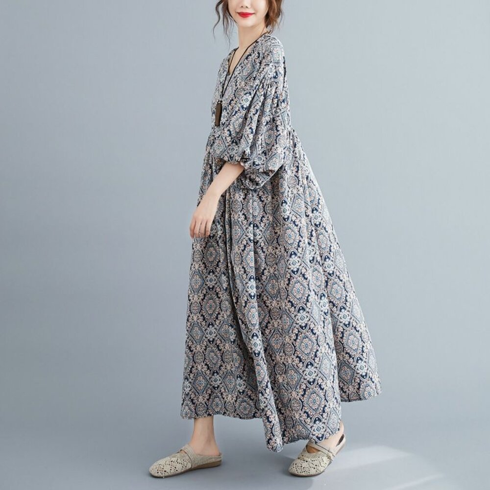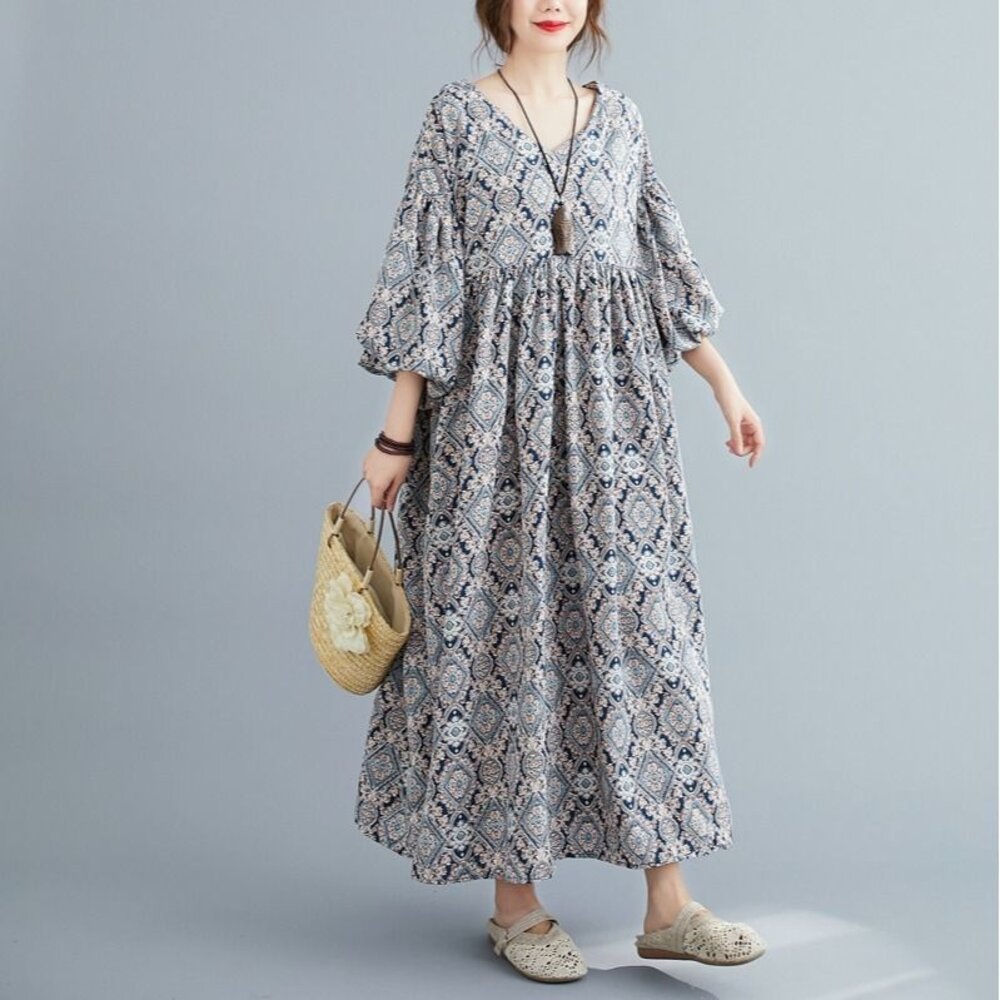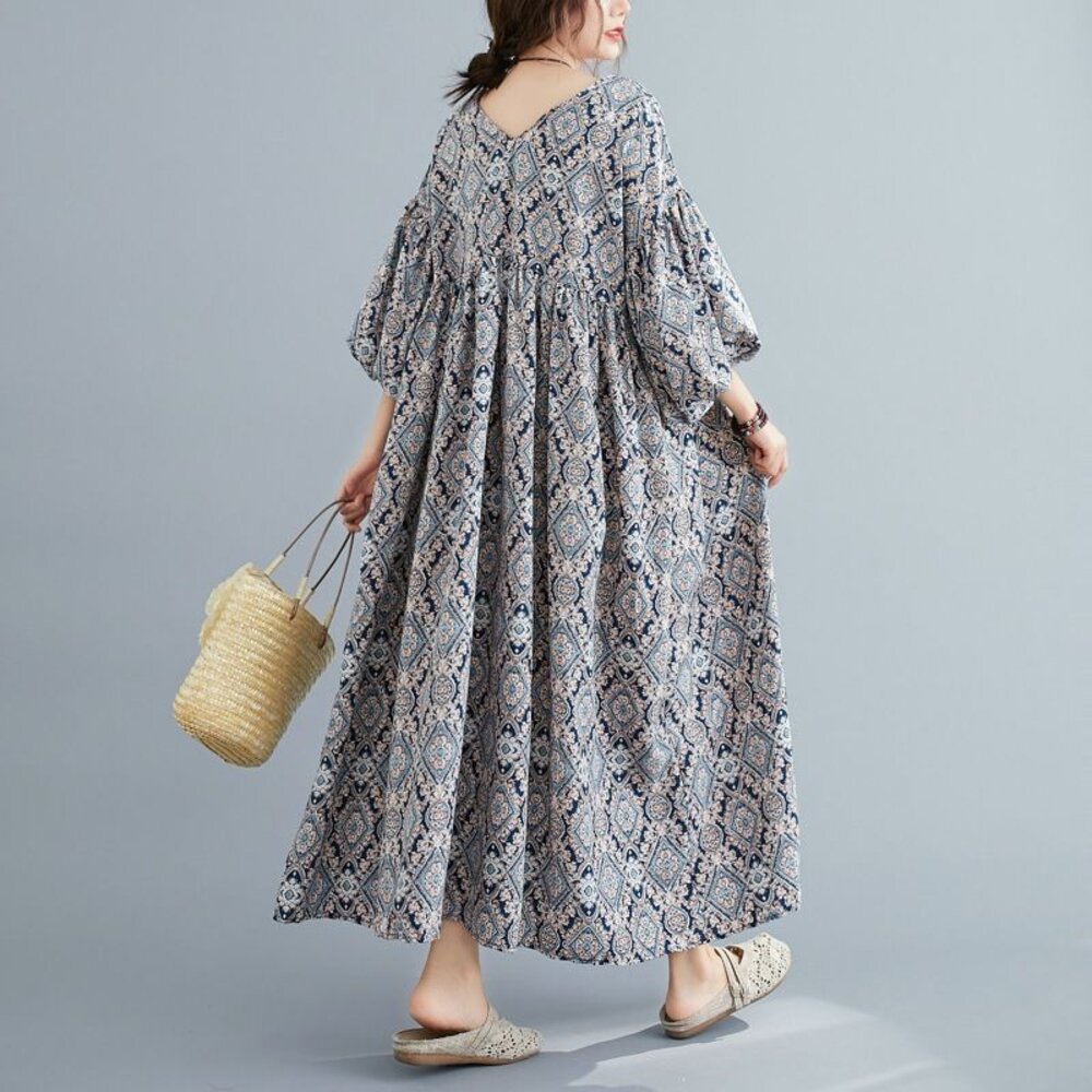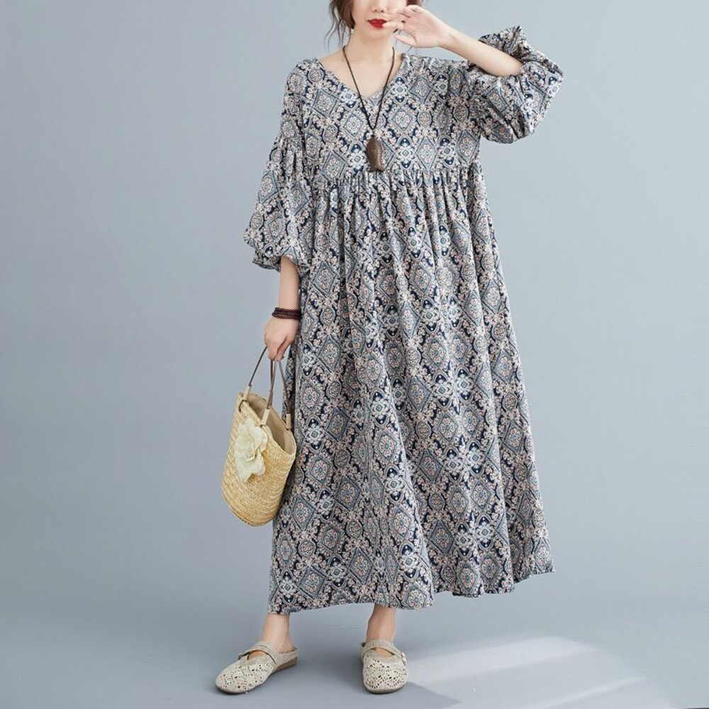 商品資訊/尺寸F/顏色.照片色/材質.棉/ 規格尺寸. F.裙長.125公分/胸圍.118公分/肩寬.64公分/袖長.29公分/肩連袖.49公分 商品會因不同批製作的因素,而有尺寸及顏色上些許落差,尺寸測量正負2公分為正常範圍內喔! 其他資料平放測量平面尺寸