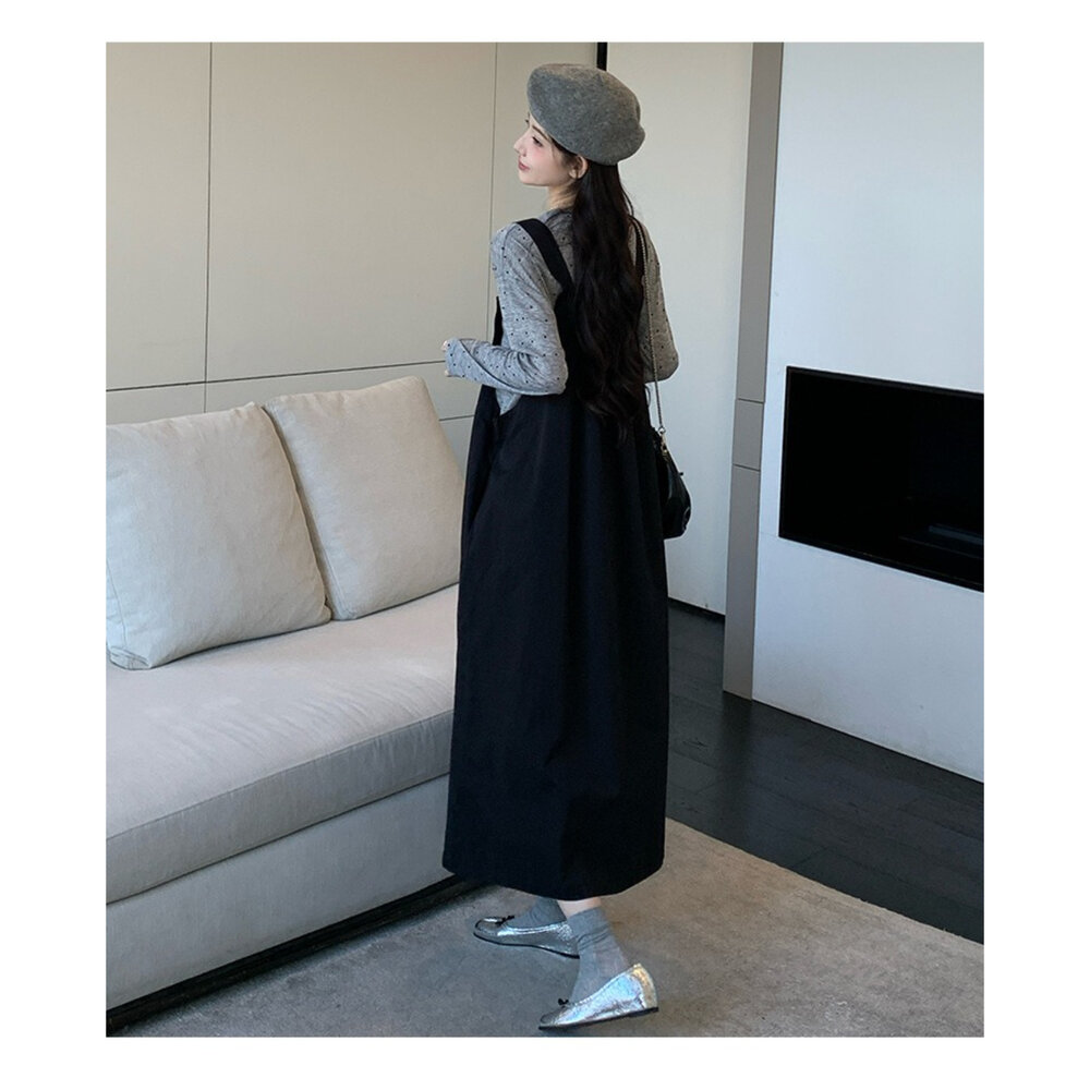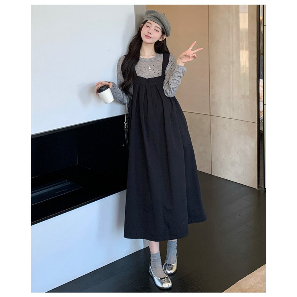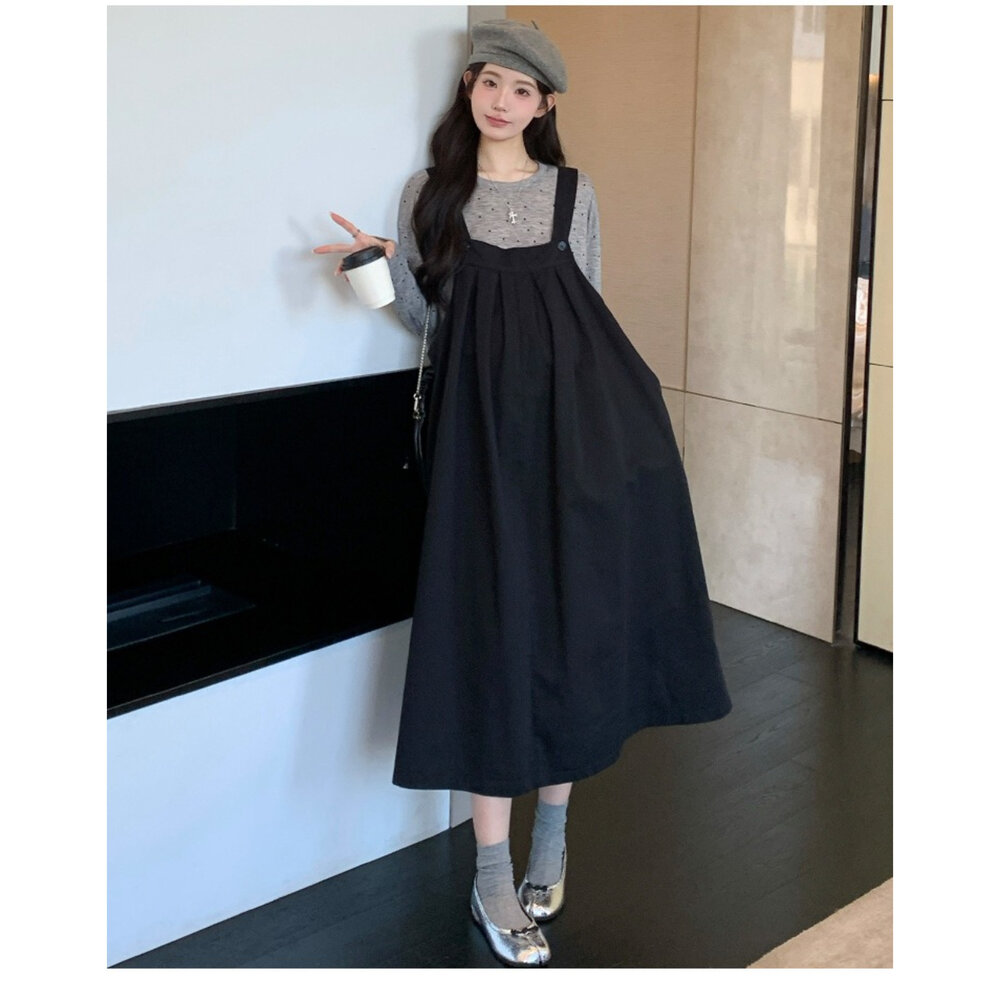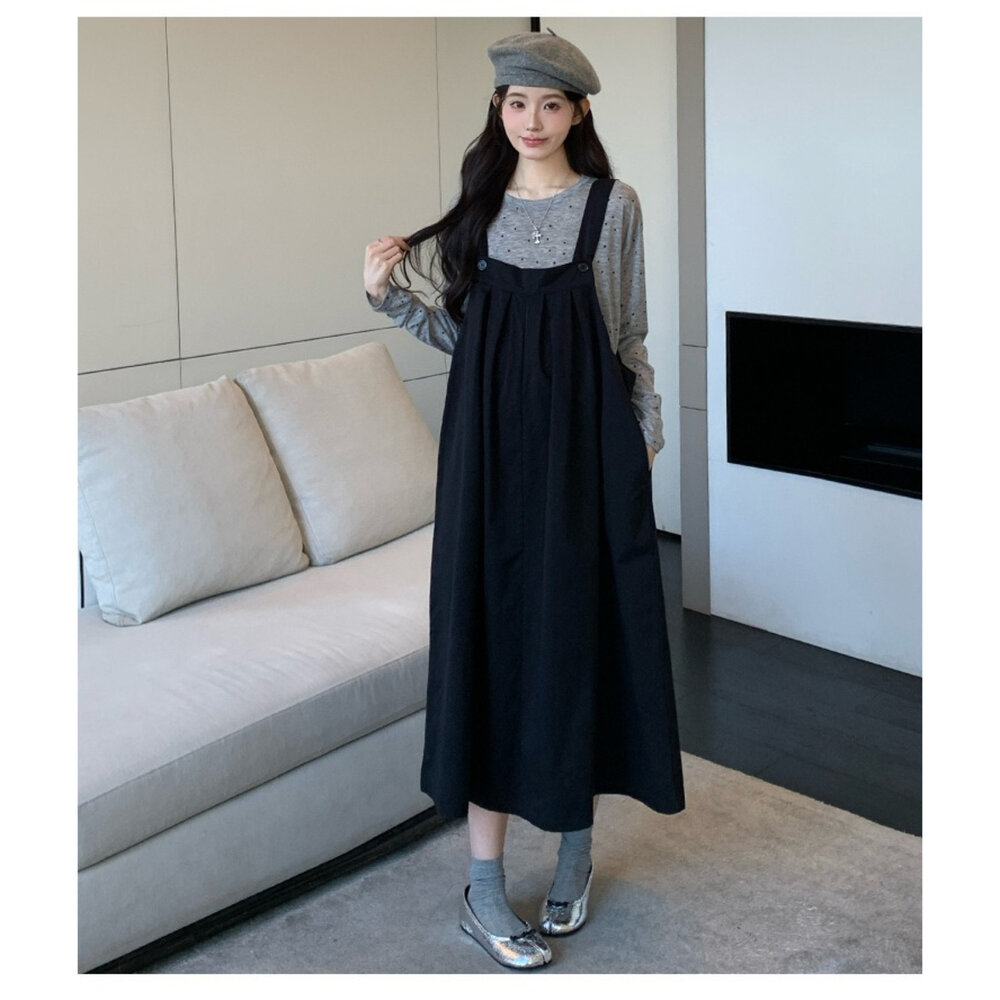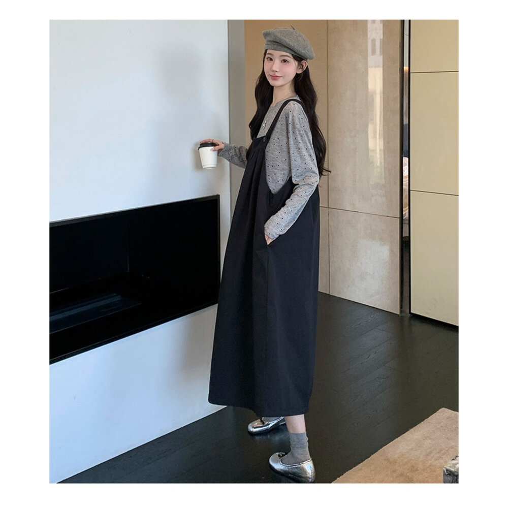 品資訊/尺寸F/顏色.黑色/材質/成分.棉+人造纖維 肩帶可調整 尺寸規格.F./全長.114公分/胸圍.134公分/ 商品會因不同批製作的因素,而有尺寸及顏色上些許落差,尺寸測量正負2公分為正常範圍內喔! 其他資料平放測量平面尺寸