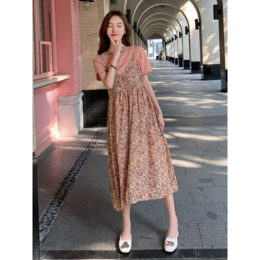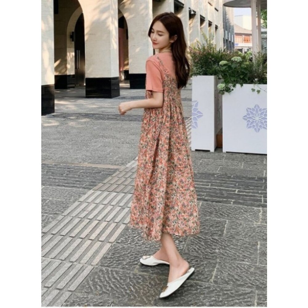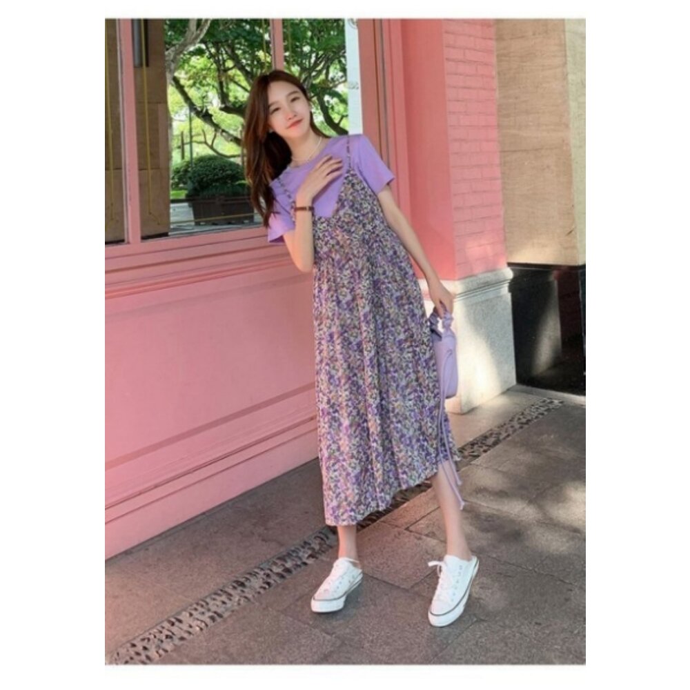 商品資訊/尺寸F/顏色.紫色.橙色/材質/成分.柔棉+雪紡 尺寸/規格.F./ 裙長.110公分/胸圍.102公分/上衣衣長.60公分/胸圍.100公分/肩寬.40公分/袖長.18公分 商品會因不同批製作的因素,而有尺寸及顏色上些許落差,尺寸測量正負2公分為正常範圍內喔! 其他資料平放測量平面尺寸