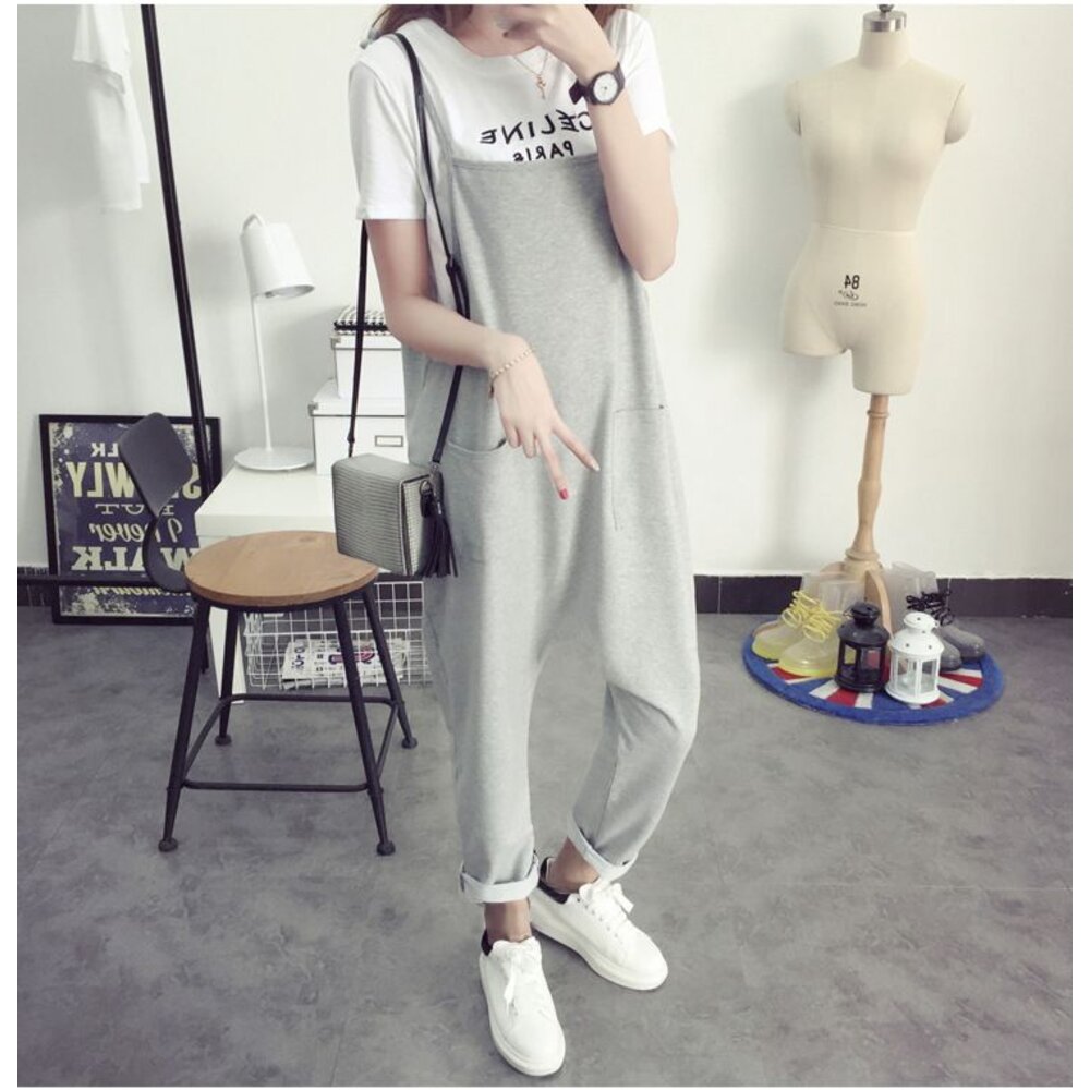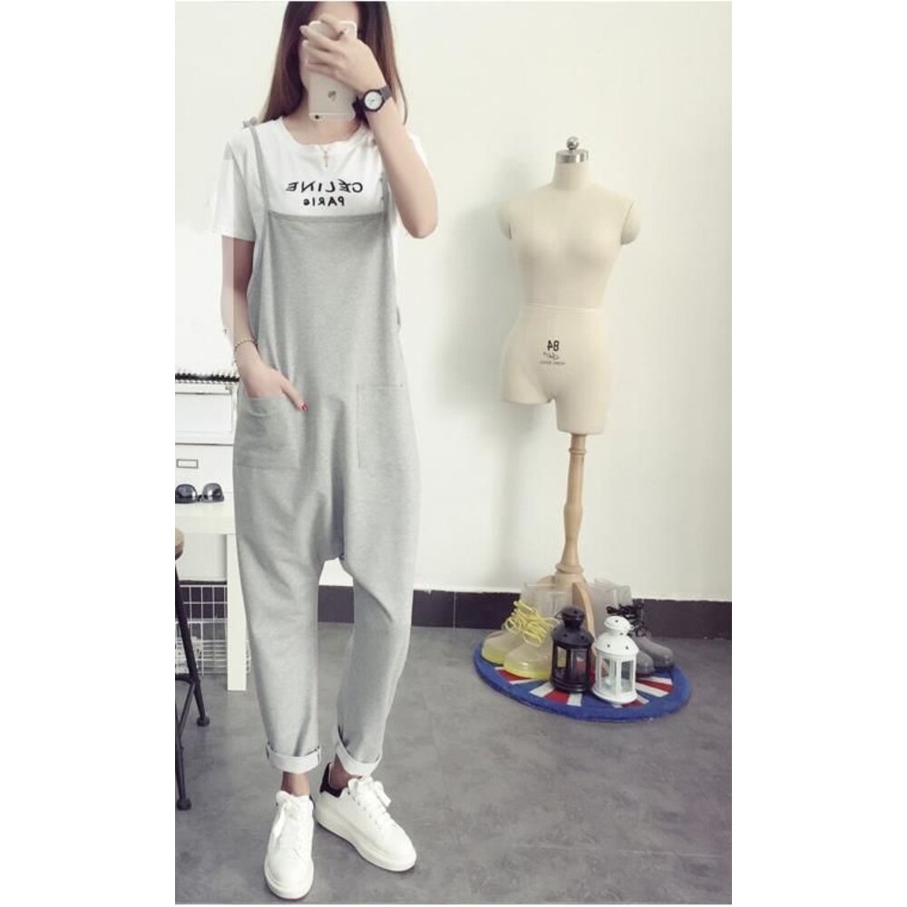 產品資訊/顏色.黑色.灰色/素材.純棉/尺寸.F 全長.128CM/從肩線量全長.108CM/褲腳.33CM/大腿圍.60-70CM /腰圍.108-120CM./褲檔33公分(從肚臍到跨下)/褲檔到腳踝53公分 商品會因不同批製作的因素,而有尺寸及顏色上些許落差,尺寸測量正負2公分為正常範圍內喔! 其他資料平放測量平面尺寸