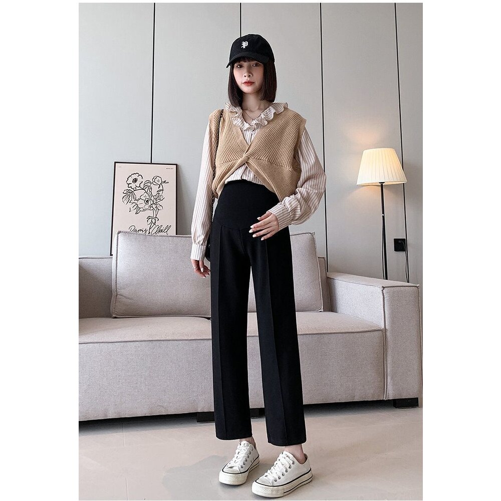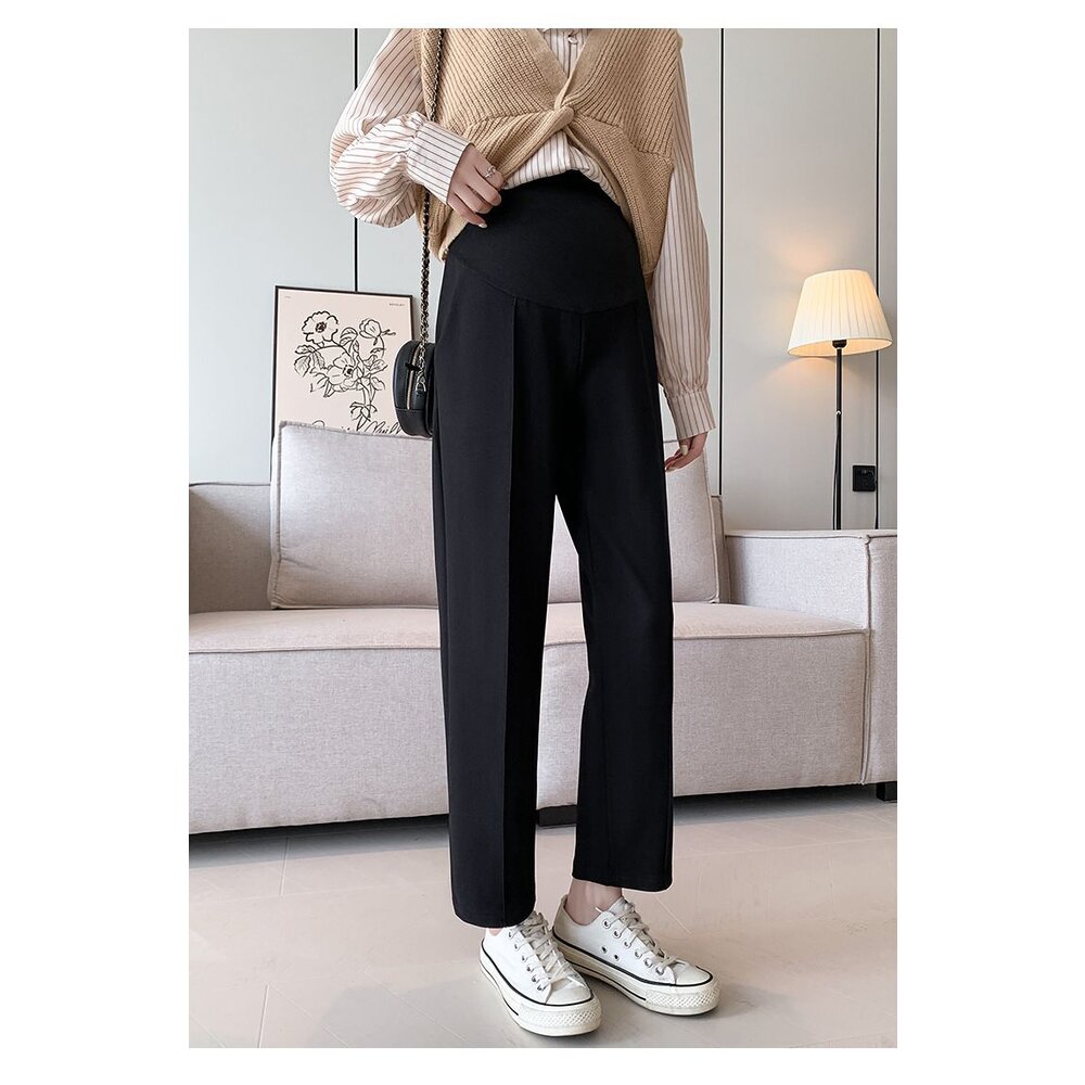 【P9004】 春夏 棉麻 托腹褲 純色 哈倫褲 M-XXL 孕婦 高腰 托腹褲 九分褲