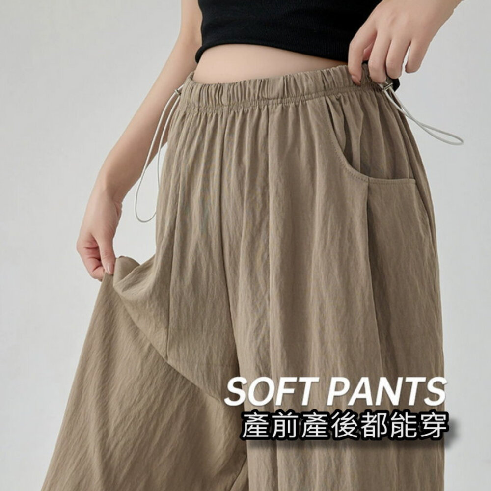 【P9004】 春夏 棉麻 托腹褲 純色 哈倫褲 M-XXL 孕婦 高腰 托腹褲 九分褲