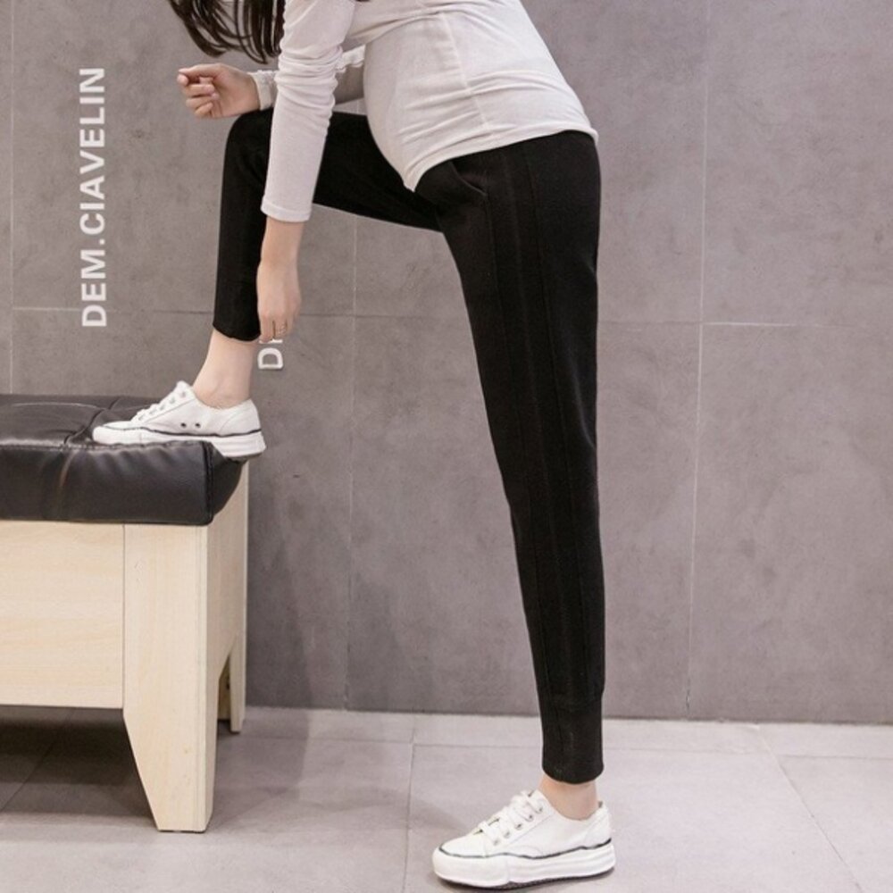 休閒寬鬆版型,褲腳縮口設計,方便俐落。質感佳,高腰托腹,可調式腰圍,一褲可穿到生。