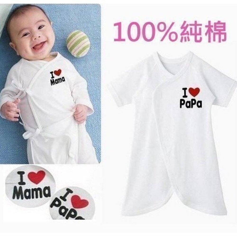 【品名】日單 我愛爸媽 新生兒哈衣 純棉蝴蝶衣/新生兒連身衣 短袖款