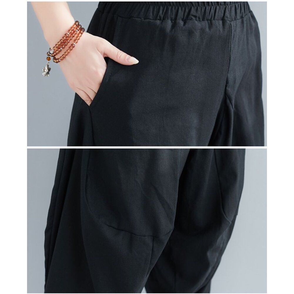商品資訊/尺寸M/顏色.黑色/材質.棉麻/ 尺寸. F褲長.84公分/臀圍.160公分/大腿圍.72公分/腰圍.68-104公分/褲口.38公分 ● 商品會因不同批製作的因素,而有尺寸及顏色上些許落差,尺寸測量正負2公分為正常範圍內喔! 其他資料平放測量平面尺寸 商品若有分顏色和尺寸,請務必於問與答備註您要的顏色和尺寸哦 材質/成分:上方描述 規格:圖片色
