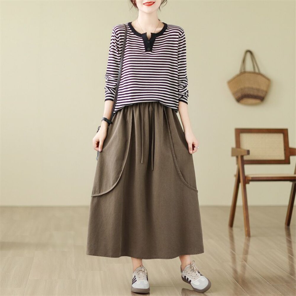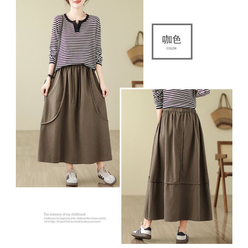 商品資訊/尺寸L-XL/顏色.照片色/材質.棉 尺寸. L./裙長.87公分/腰圍.64公分/下擺.176公分 XL./裙長.88公分/腰圍.68公分/下擺.180公分 商品會因不同批製作的因素,而有尺寸及顏色上些許落差,尺寸測量正負2公分為正常範圍內喔!其他資料平放測量平面尺寸
